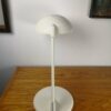 Seneca asztali lámpa fehér színben, az 1970-es évekből. Kerek, fehér fémtalppal és perforált állítható lámpa búrával. A funkcionális kialakításnak köszönhetően könnyedén alkalmazkodik minden megvilágítást igénylő munkaterülethez vagy asztallaphoz. Kiváló állapotban elérhető.