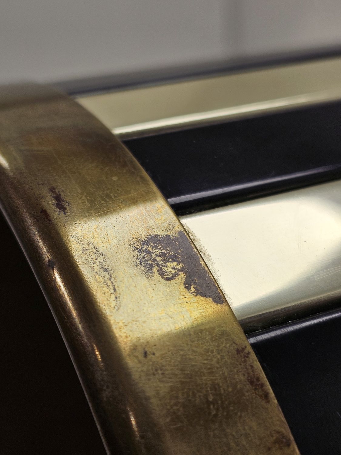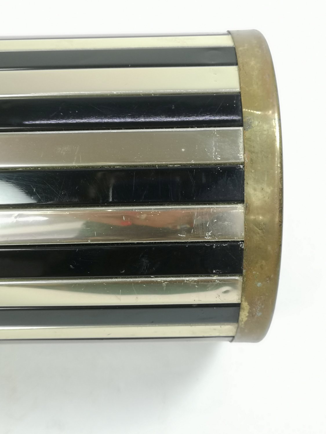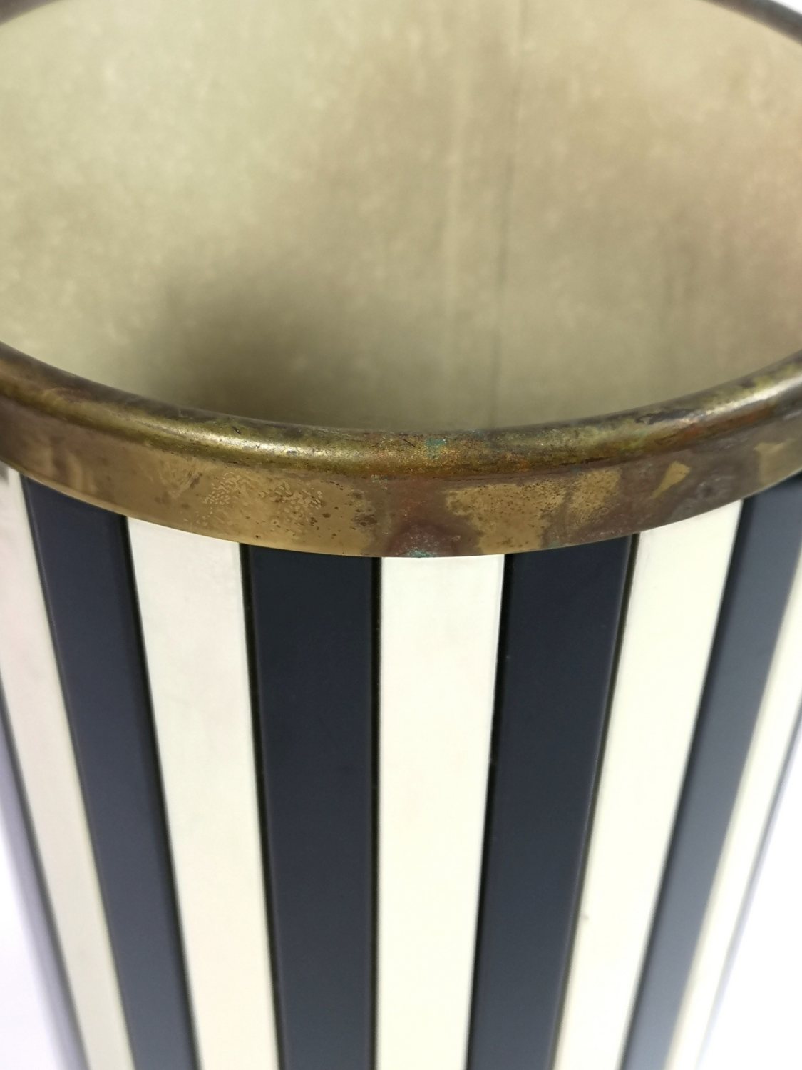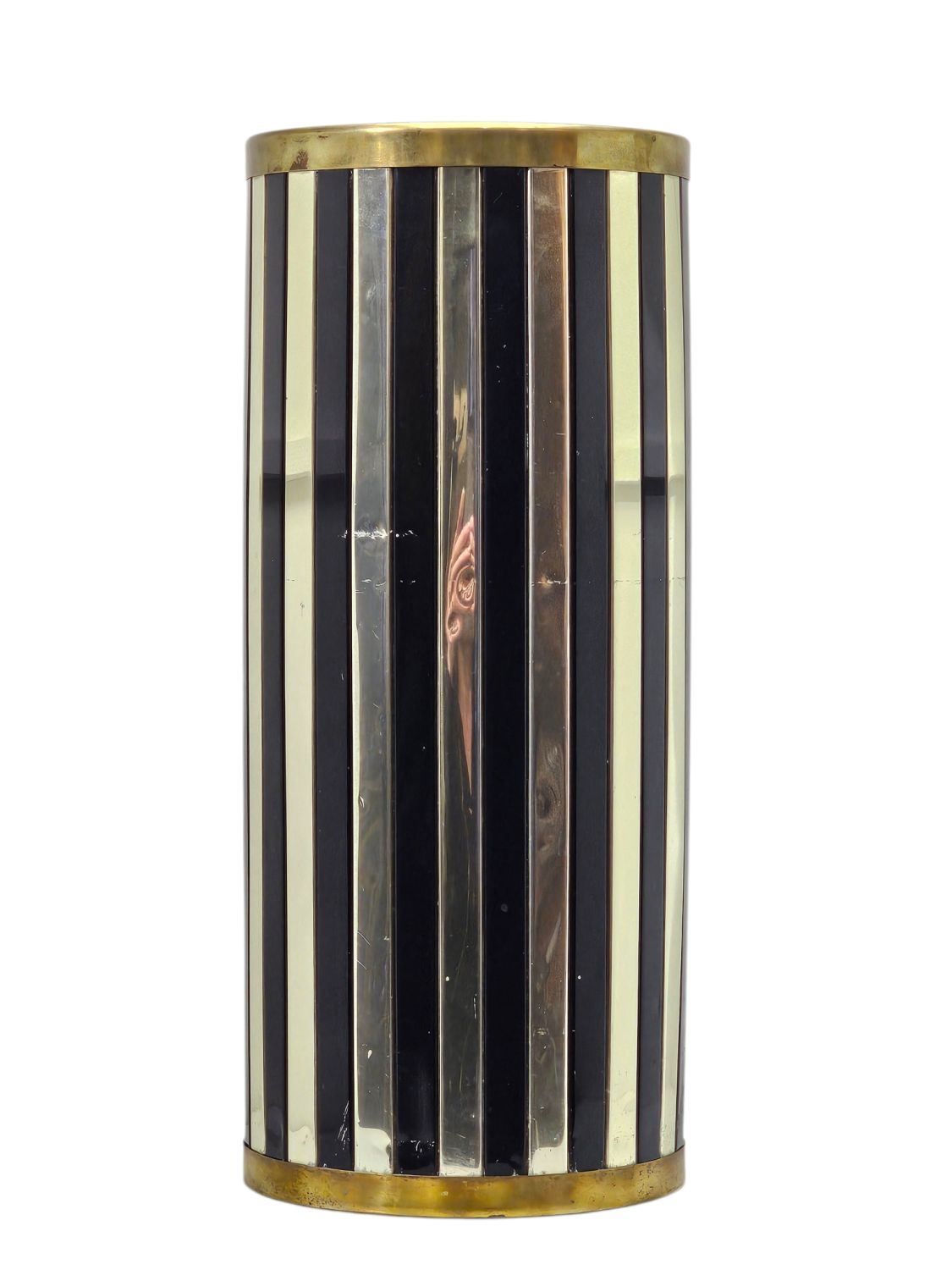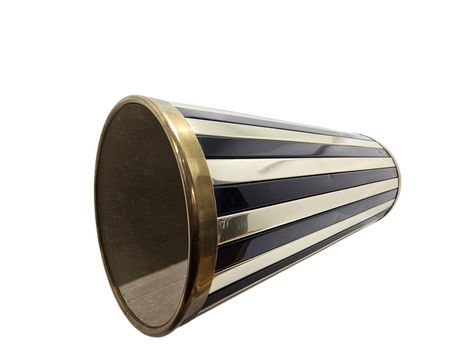 Mid century modern, zománcozott és fém esernyőtartó, tervezte Siva Poggibonsi , Olaszország. Elegáns arany és fekete szín kombinációnak köszönhetően modern és klasszikus enteriőrbe is beilleszthető.