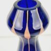 Kobaltkék művészüveg váza, dekoratív , a szecesszió stílusjegyeit hordozó díszítéssel.