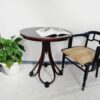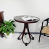 Gőzölt, hajlított fa szecessziós thonet asztal. Különleges, egyéni tervezésű lábazattal, ovális asztallappal, igazi gyűjteménybe illő darab a 20. század első feléből. Jelzés nélkül.