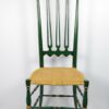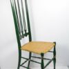 Chiavari magastámlás szék az 1950-es évekből, olasz tervezés, elegáns zöld színben, arany festéssel, nádazott ülőlappal