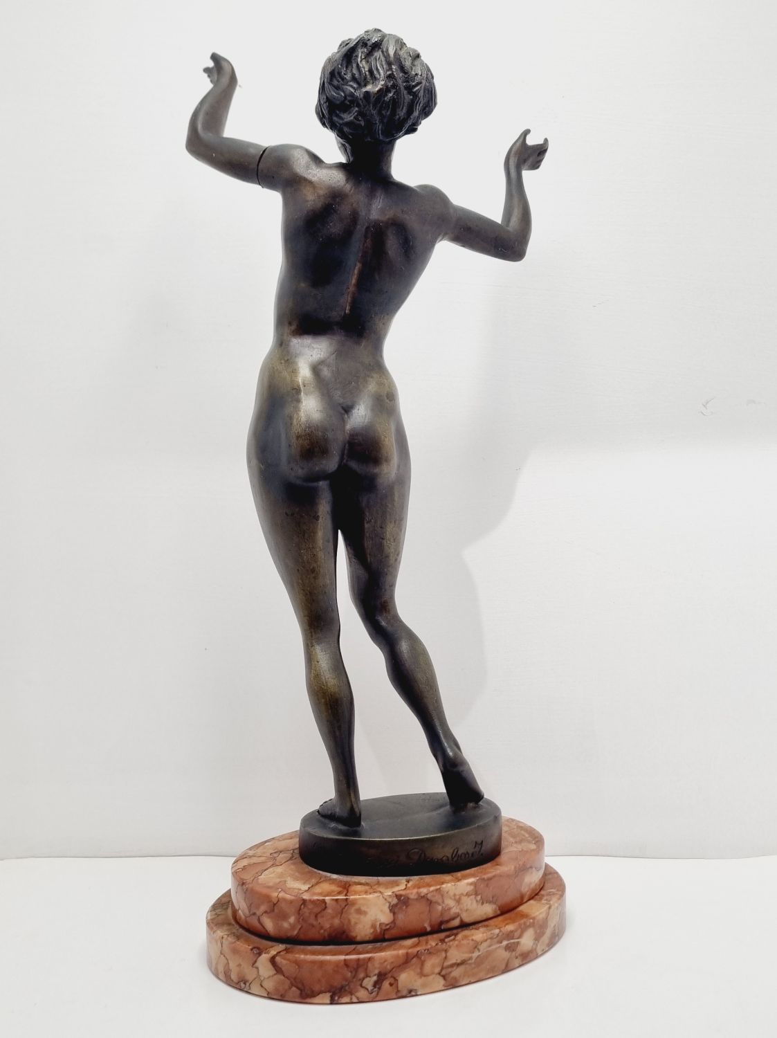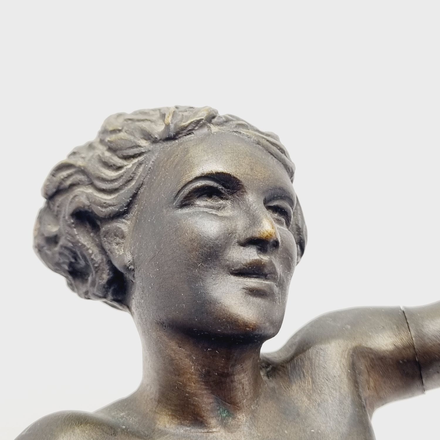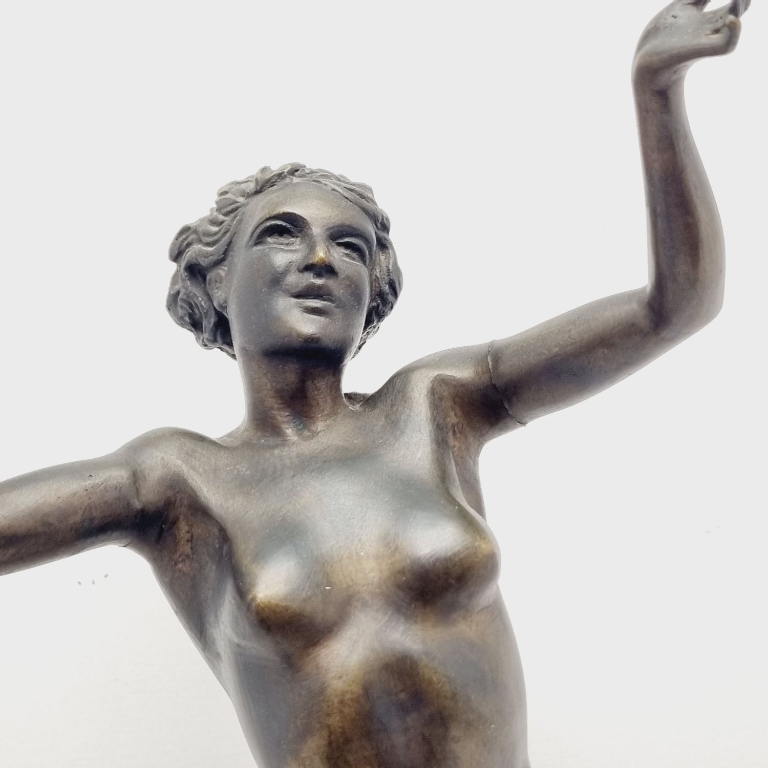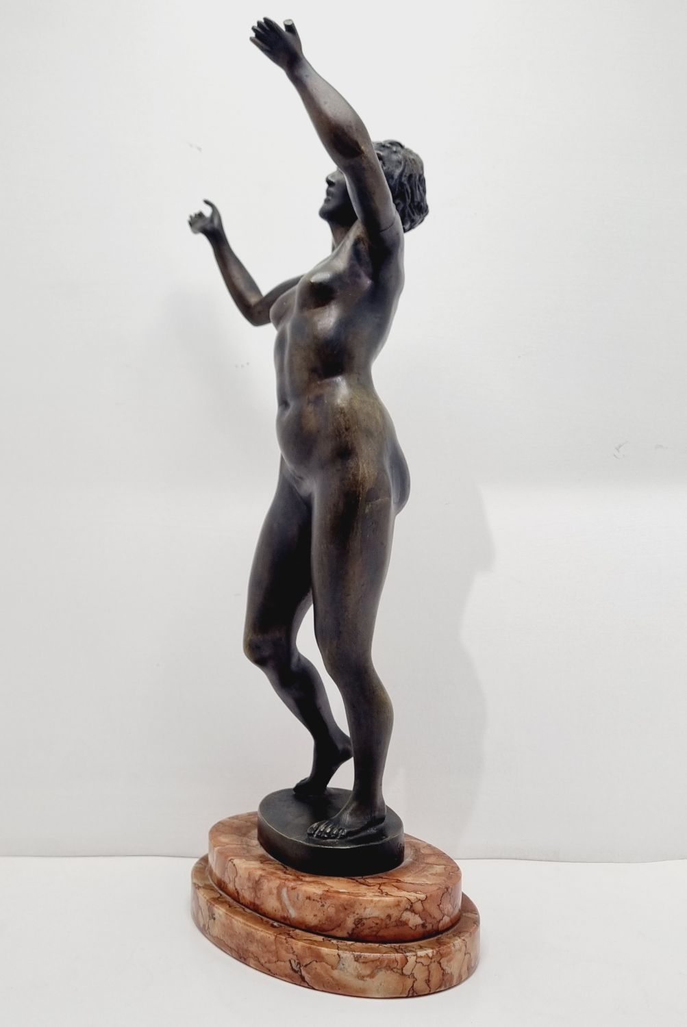 Szentgyörgyi István: Női akt bronz alkotása az 1930-as években készült. A modell múzsaként inspirálta az alkotót – allegórikusan megjelenítve ezzel -a női test szépségét. Patinás antik darab. Korának megfelelő állapotban . Méretei : 43x18x12cm