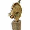 Grafikus, organikus faragott ördög fejszobor. Ismeretlen művész alkotása