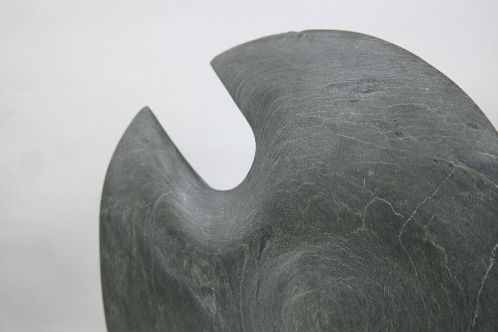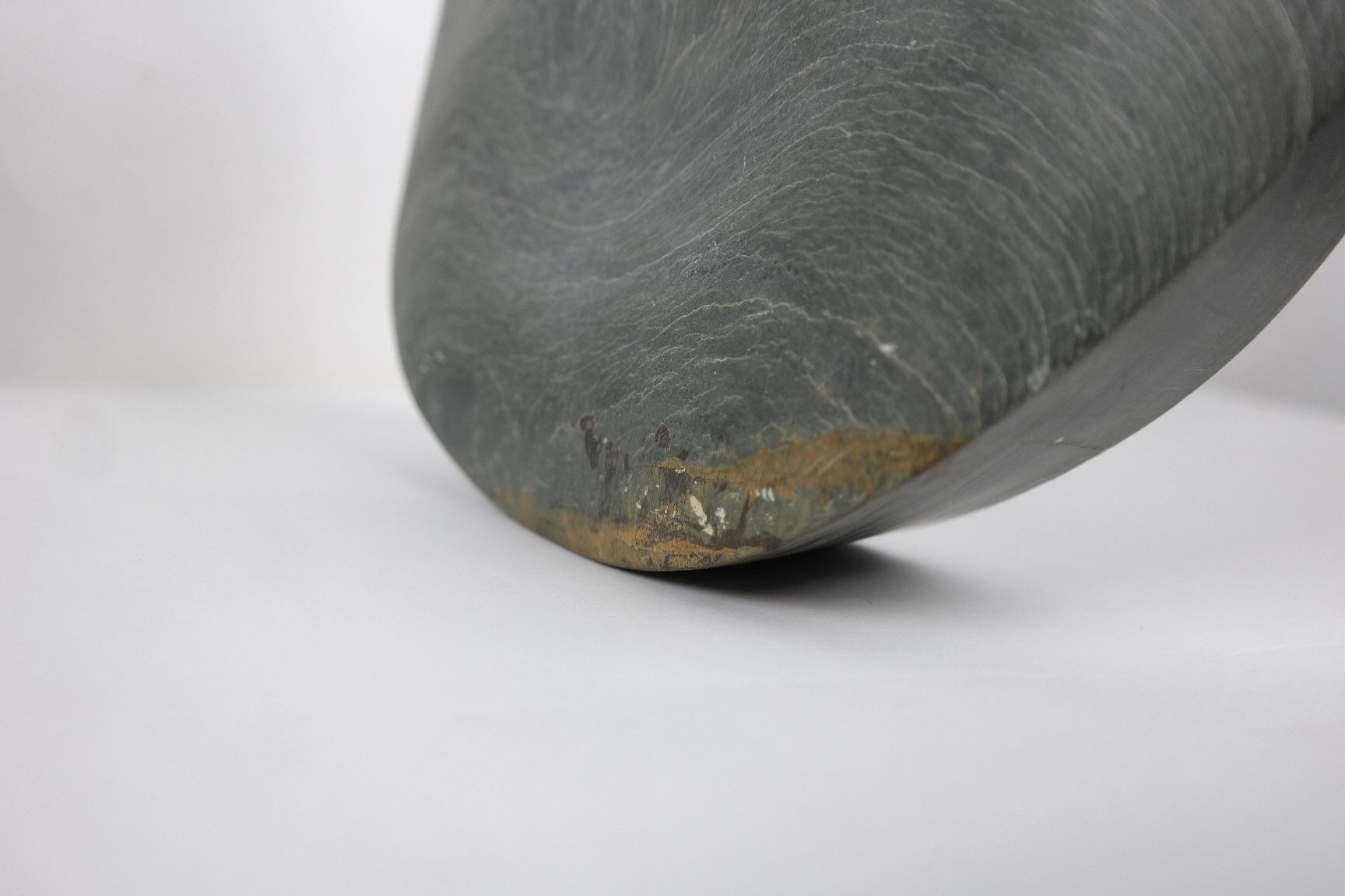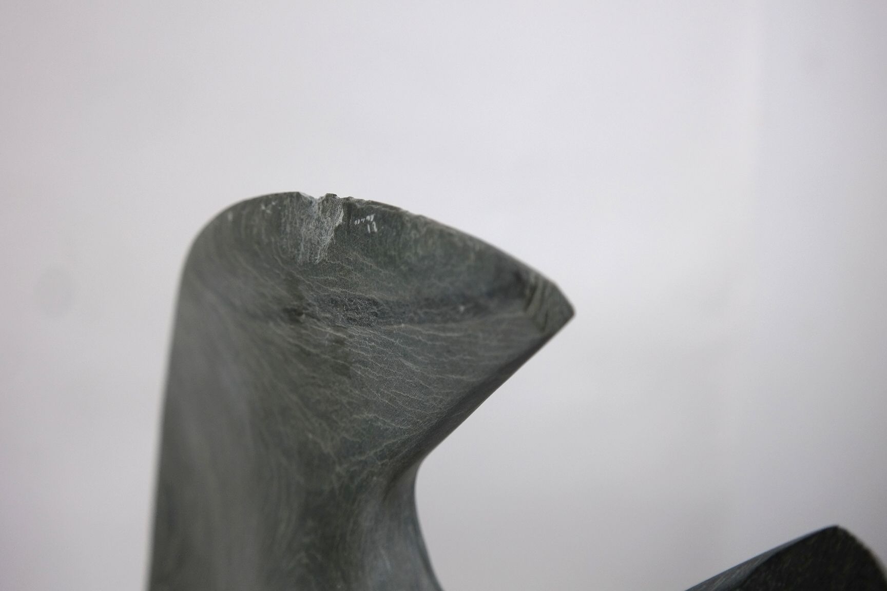 Térplasztika, térbeli installáció. Kőből készült iparművészeti alkotás az 1970-es évekből. Összetett formák és struktúrák jellemzik. Brutalista stílusú enteriőrben izgalmas lakberendezési kiegészíő. Korának megfelelő állapotú. Méretei: 26 x 23 x 5 cm.