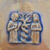Vörösrézből készült fali relief,tükrében mitológiai jelenet /Bűnbeesés/.Teván Margit alkotása az 1940-es években készült.Az alján jelzett, állapota a korának megfelelő. Méretei: 24x24x1 cm
