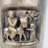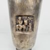 Trébelt kalapált fém ötvözetű díszpohár, közepén domborműves figulális díszitéssel .Teván Margit alkotása az 1940-es évekből. 16x10x10cm