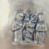 Teván Margit: Bűnbeesés c. ezüstözött rézből készült fali relief. Közepén plasztikus kétalakos bibliai jelenet díszités.1940-es években készült. Korának megfelelő állapotú.Méretei: 24x24x1 cm