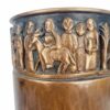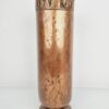 Art deco stílusú,trébelt,kalapált, vörösréz ötvözetű díszváza az 1930-as évekből. Tevan Margit ötvösművész alkotása. Talpán jelzett. Méretei: 32x10x10 cm 748 g .