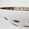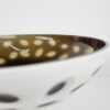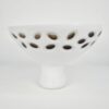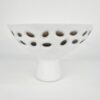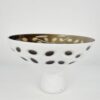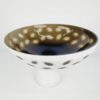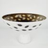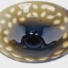 Nagy méretű, csiszolt, színezett cseh tejüveg kínálótál az 1970-es évekből. Belül és kívül sárgás barna árnyalatok játéka jellemzi. Jelzés nélkül. Méretei: 18x27x27 cm. Állapota kissé kopott, karcos a talpán.