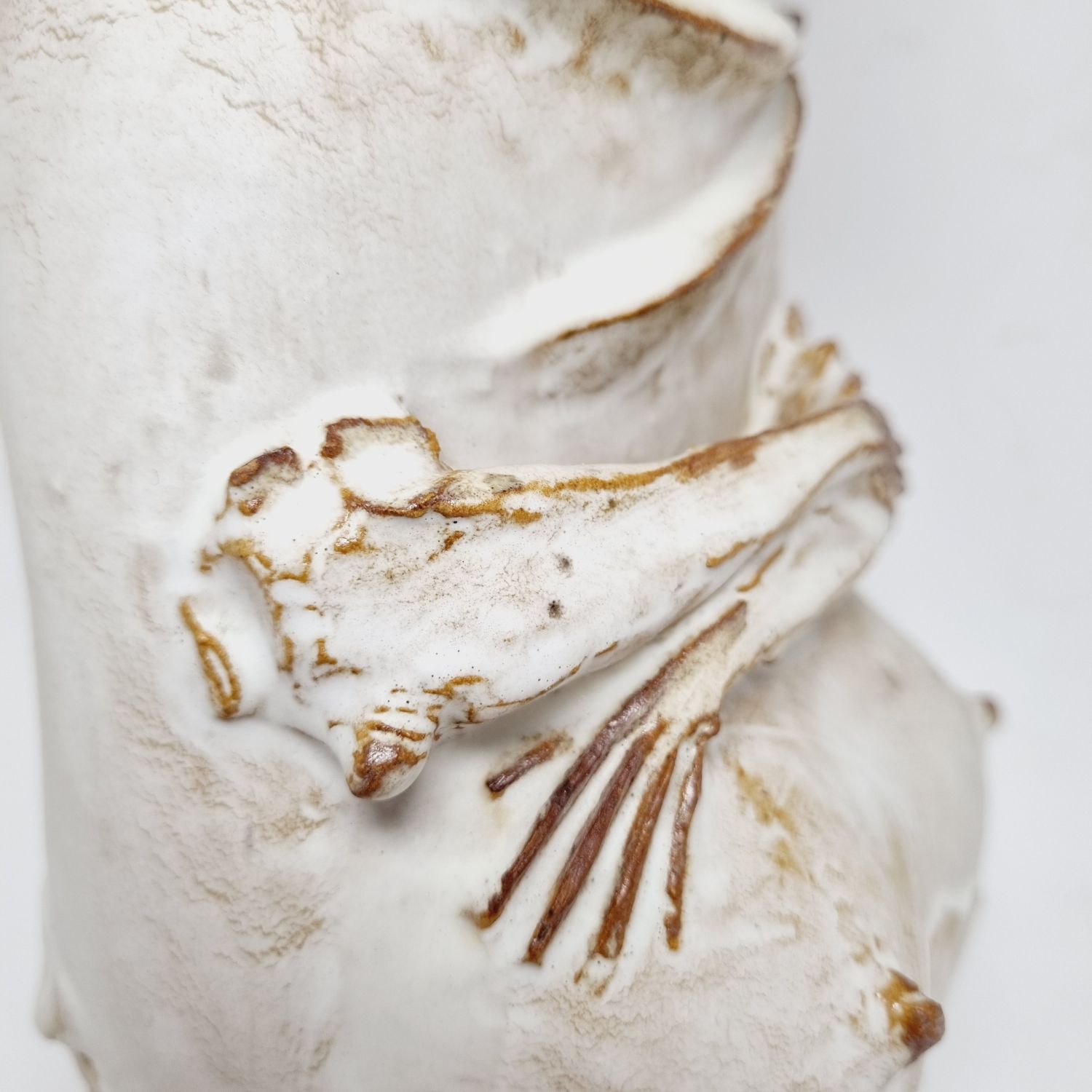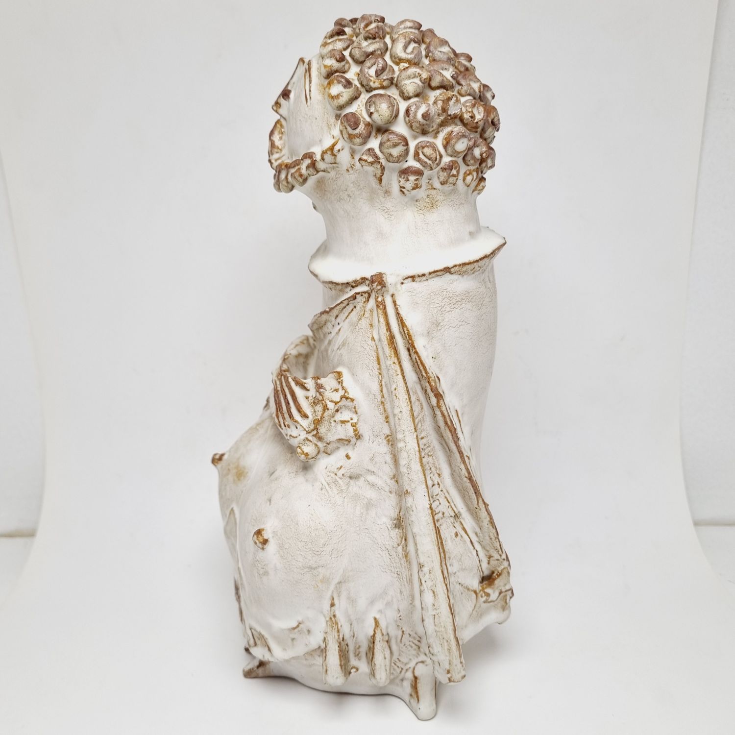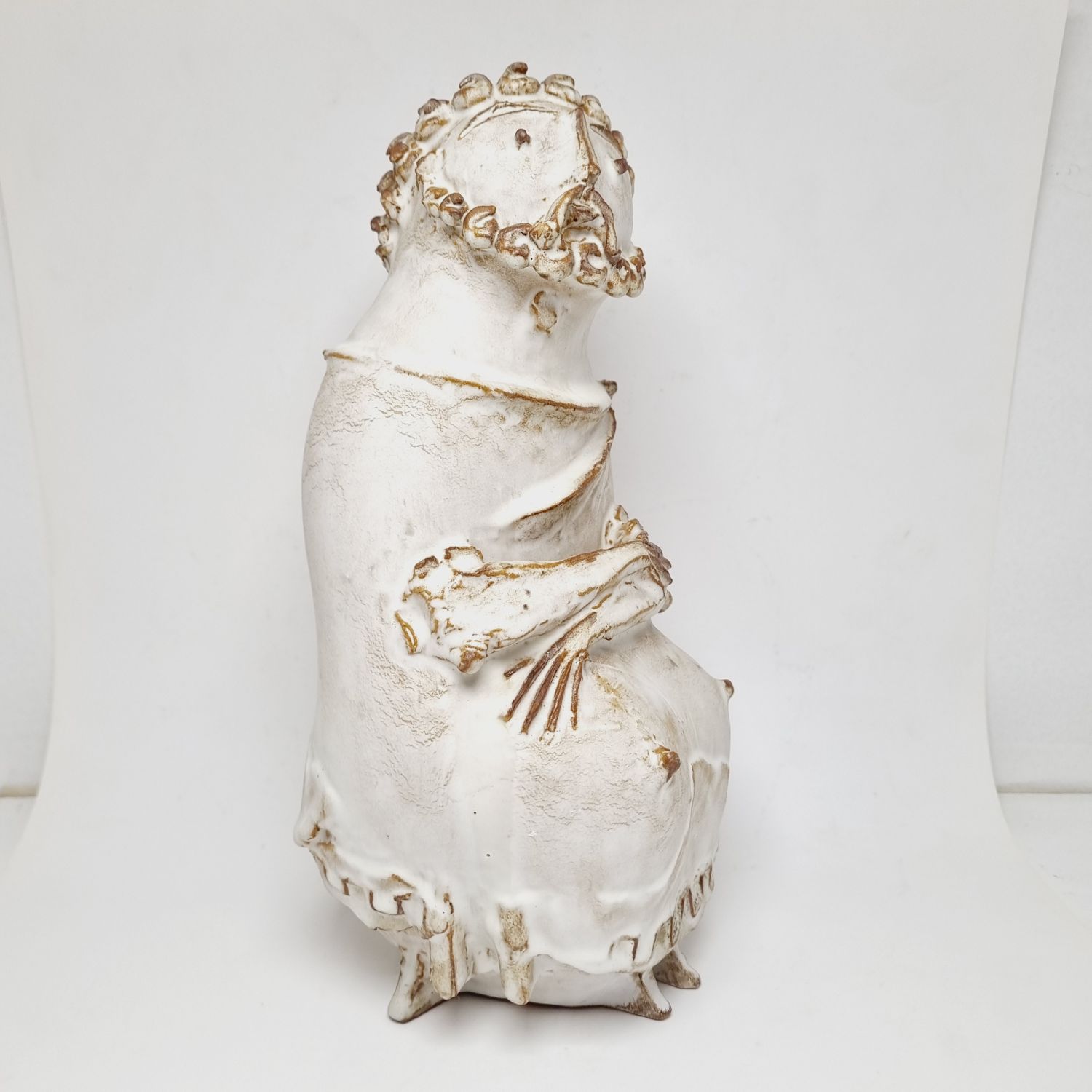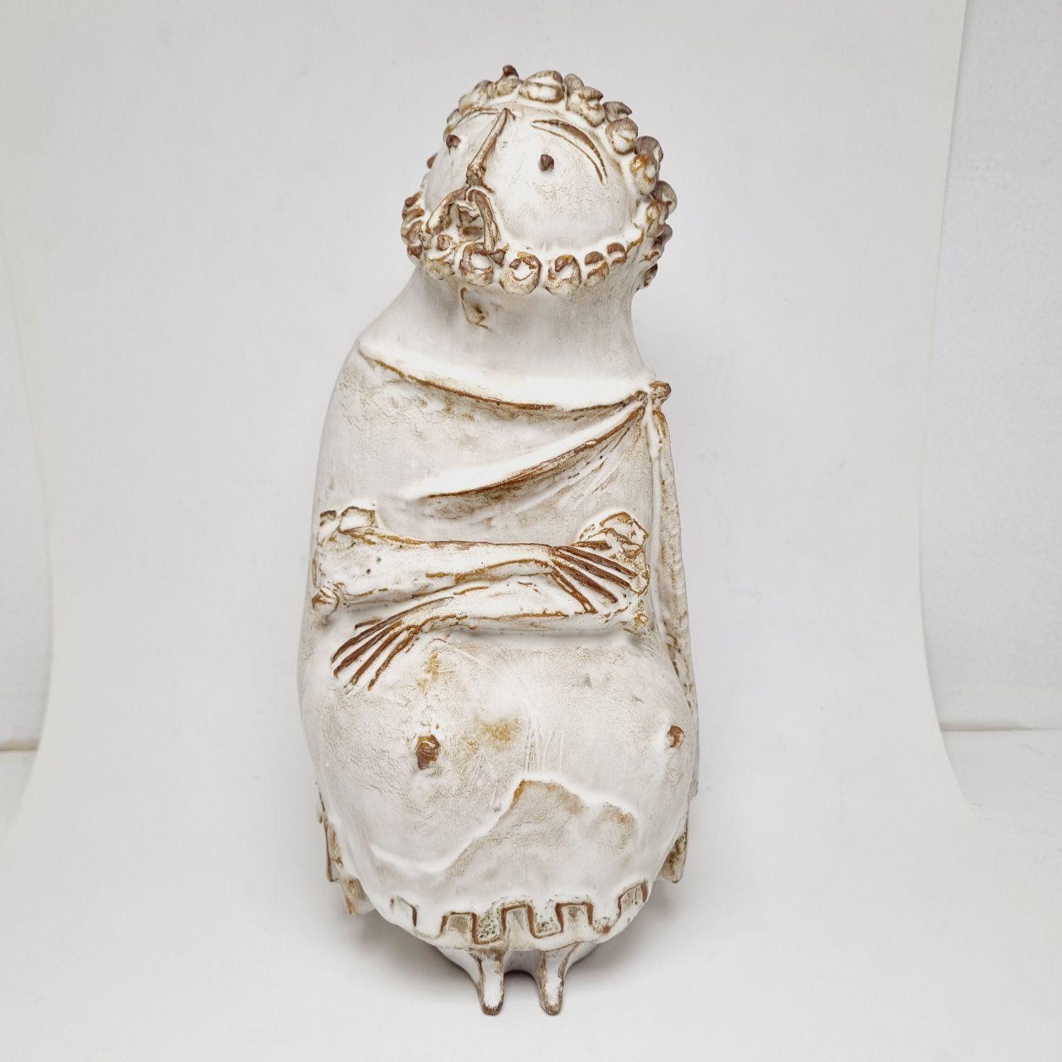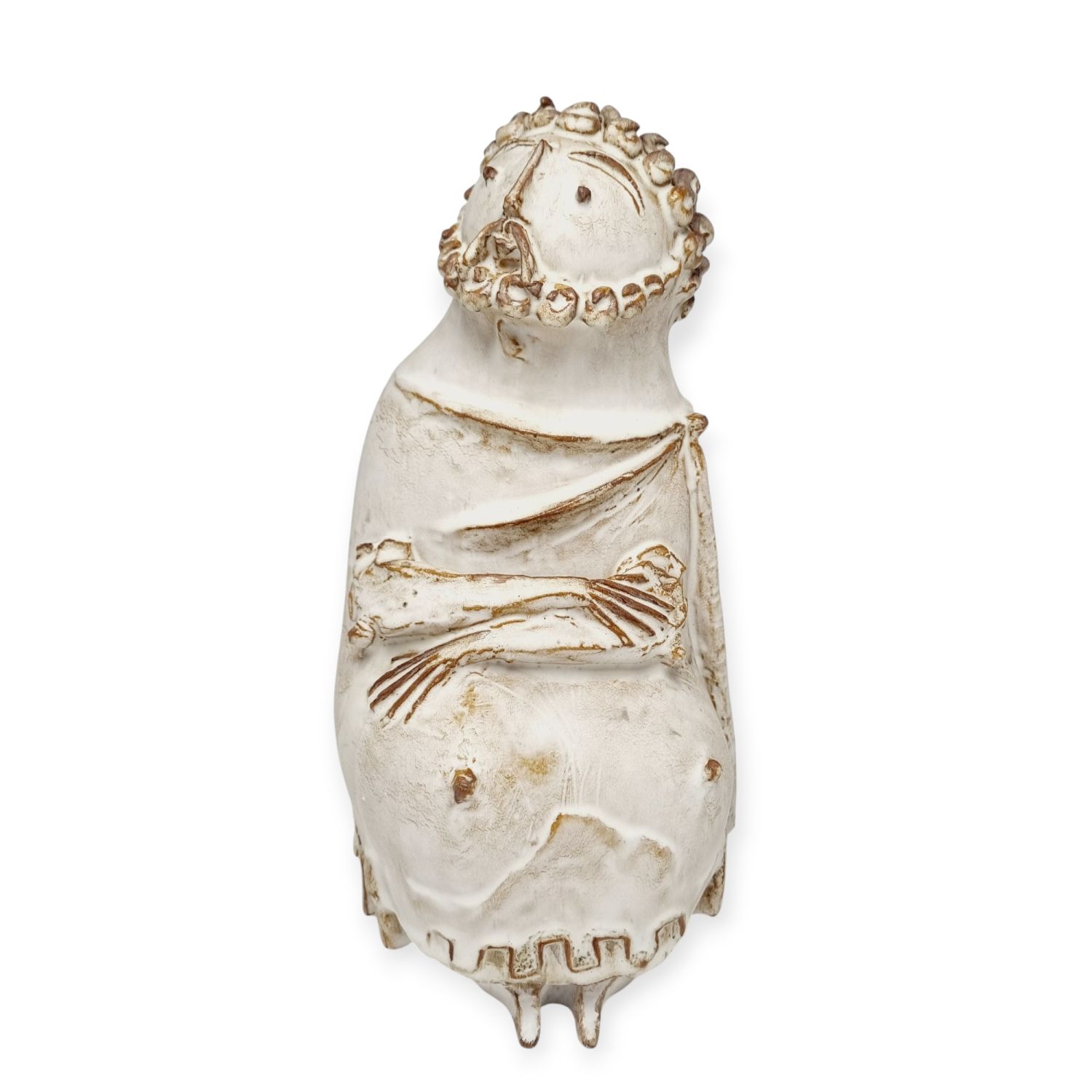 Török János: Filozófus c. kerámiája az 1950-es években készült. Különleges hangulatú, aktív csendje van a figurának. Apró részleteséggel kidolgozott ritka gyűjtői darab. Jó állapotú. Méretei: 23 x 11 x 10 cm. Az alján jelzett: Török, Pécs