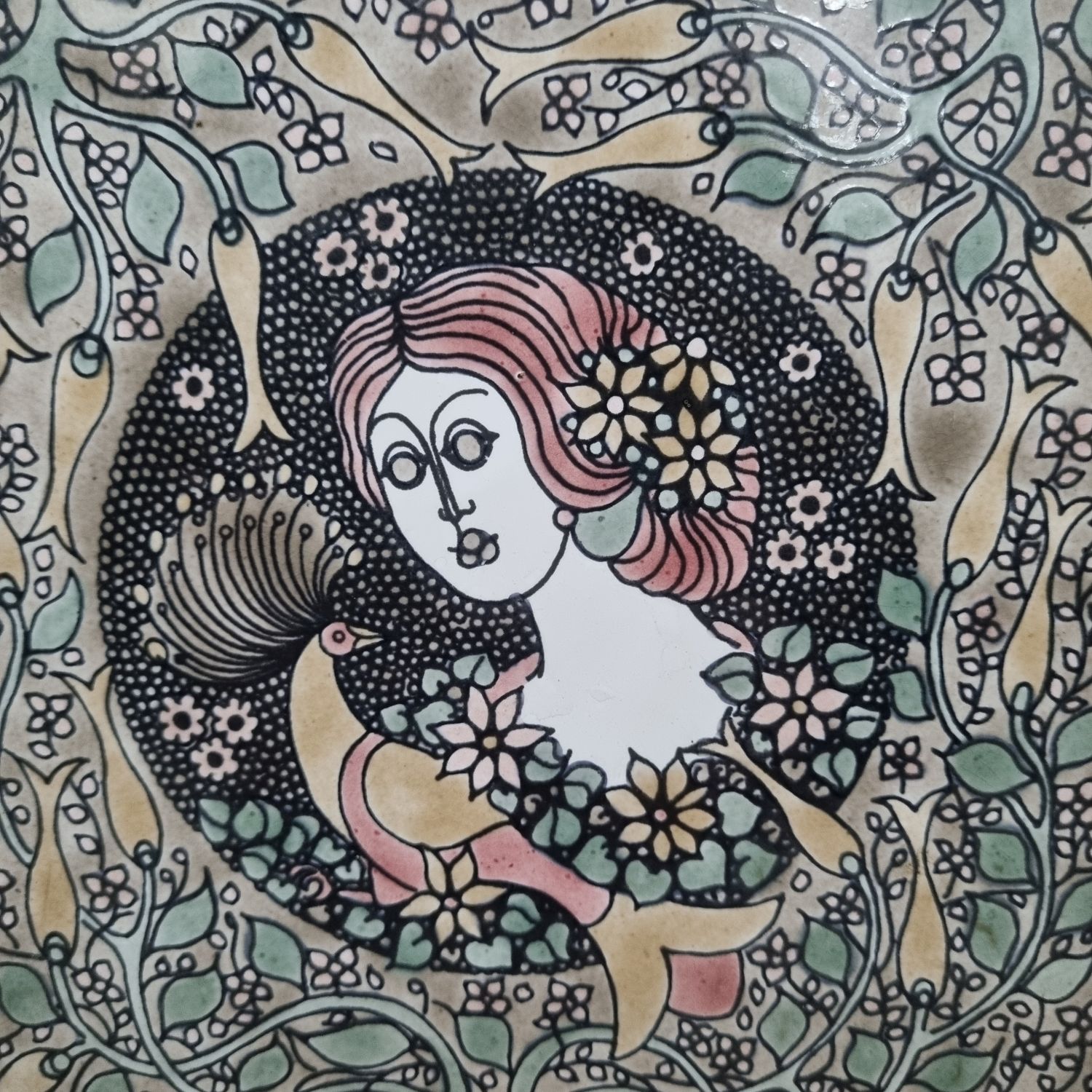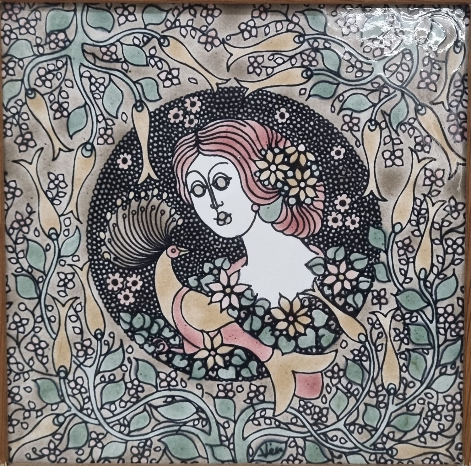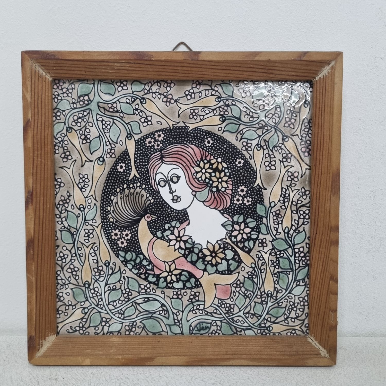 Vén Edit: Csempés falikép az 1970-es évekből. Finom színvilágú,lírai hatású lakásdekoráció. Hibátlan. mérete: 16x16x2cm