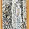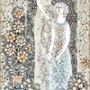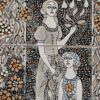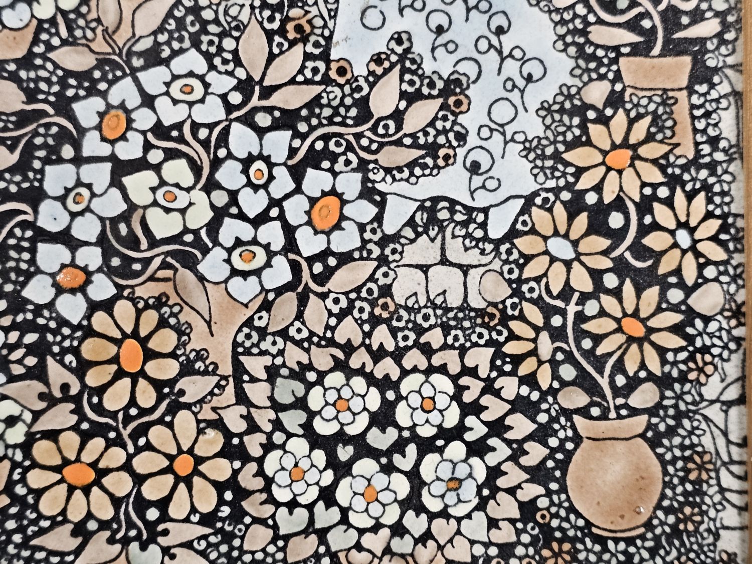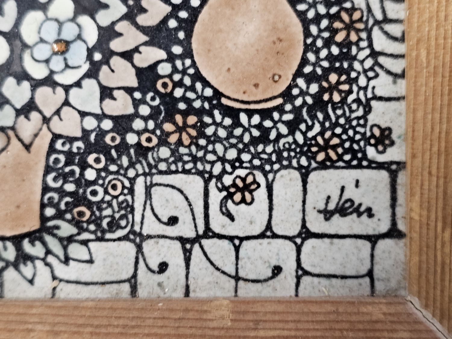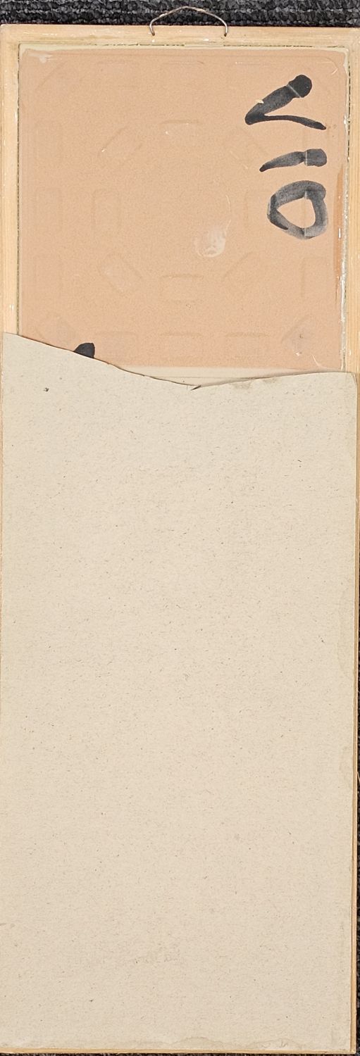 Vén Edit zománcfestett, hármas osztatú csempeképe az 1970-es évekből. Finom pasztell színek, kicsit fémes csillogó hatás.
