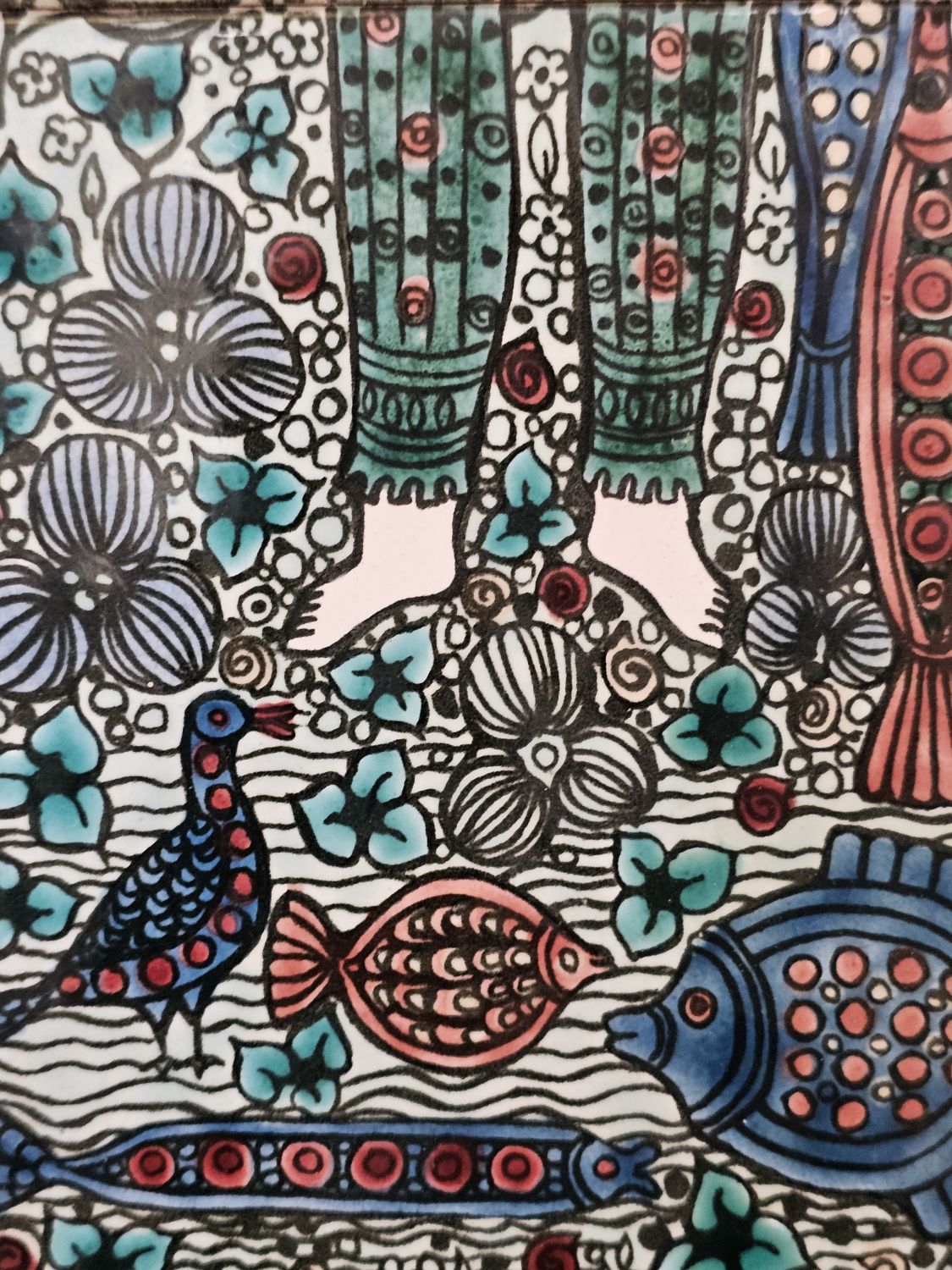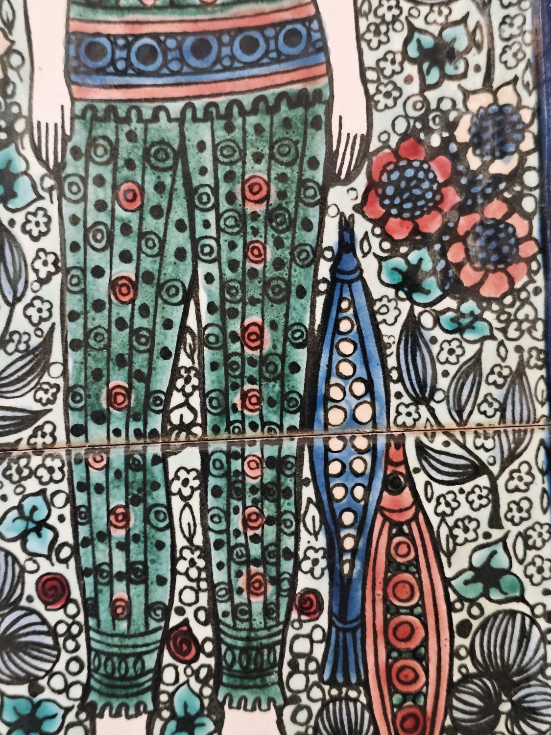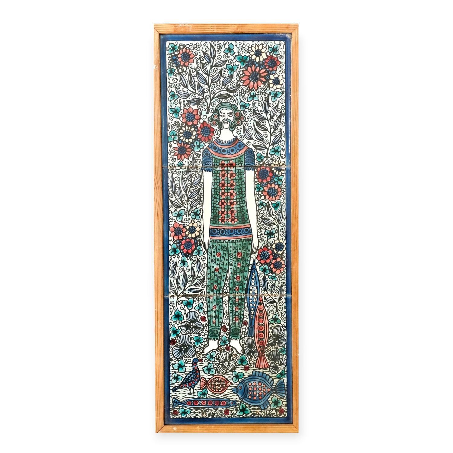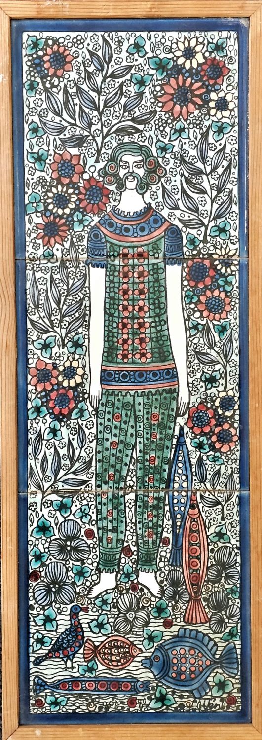 Vén Edit: Háromcsempés fali relief az 1970-es évekből. Lírai hangulatú,finom színvilágú dekoratív falikép. Hibátlan. mérete: 47x17x2cm