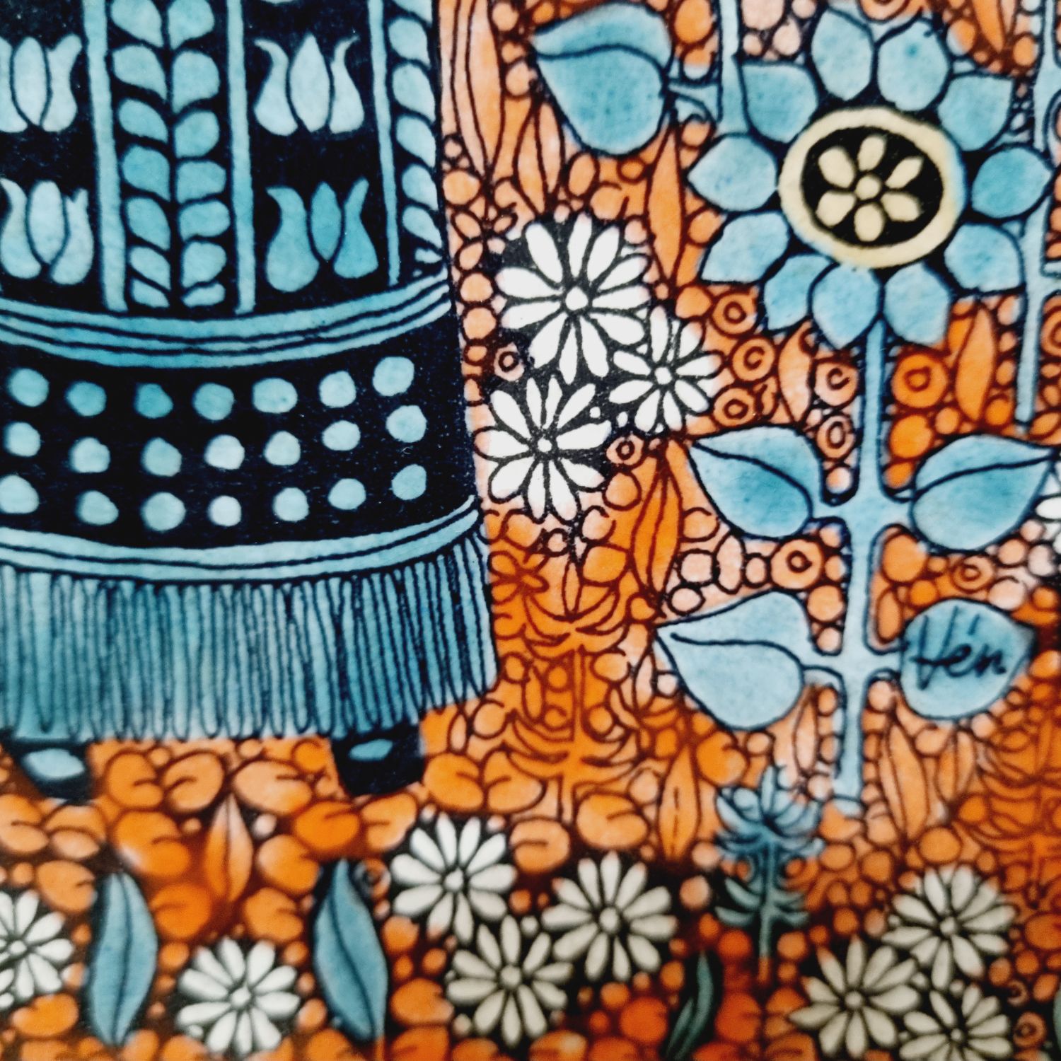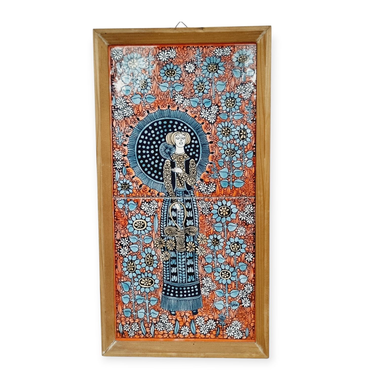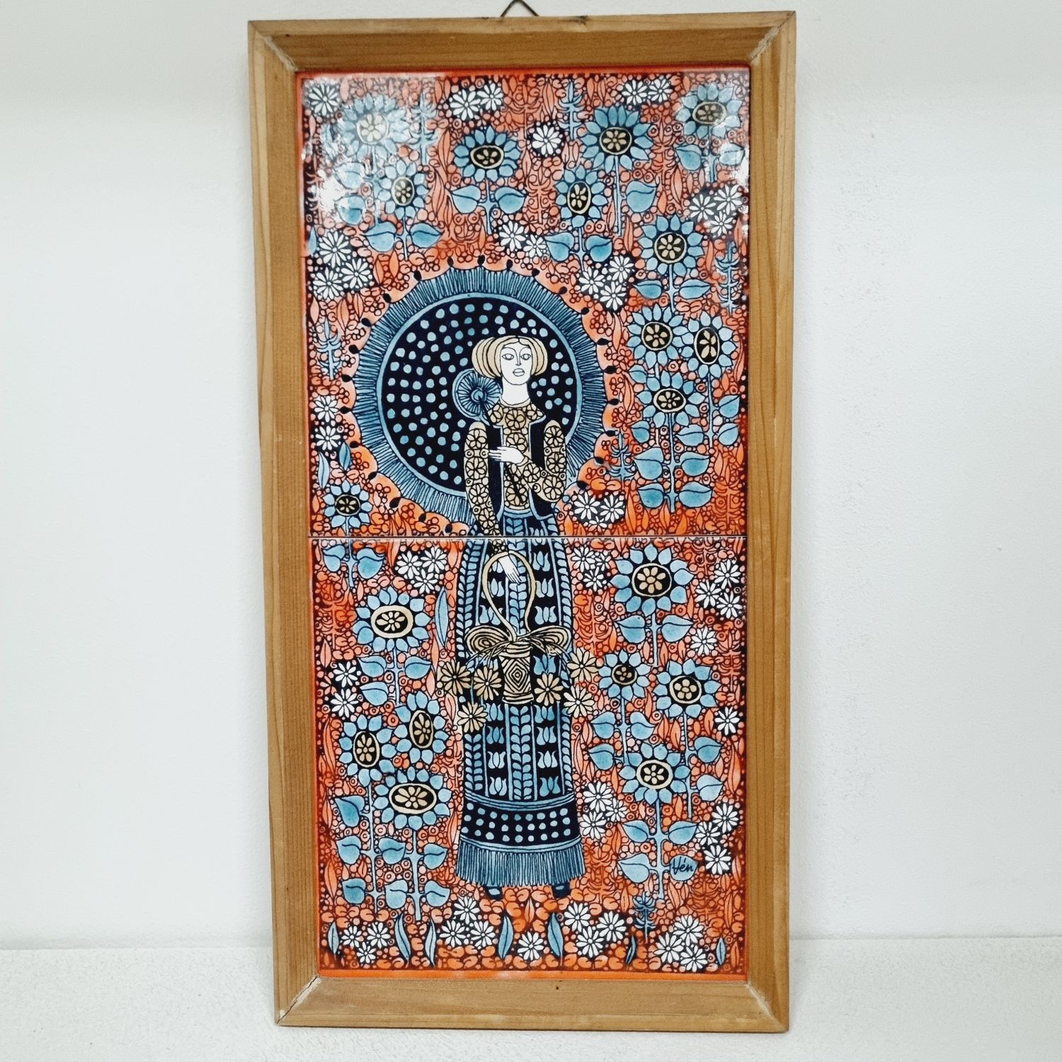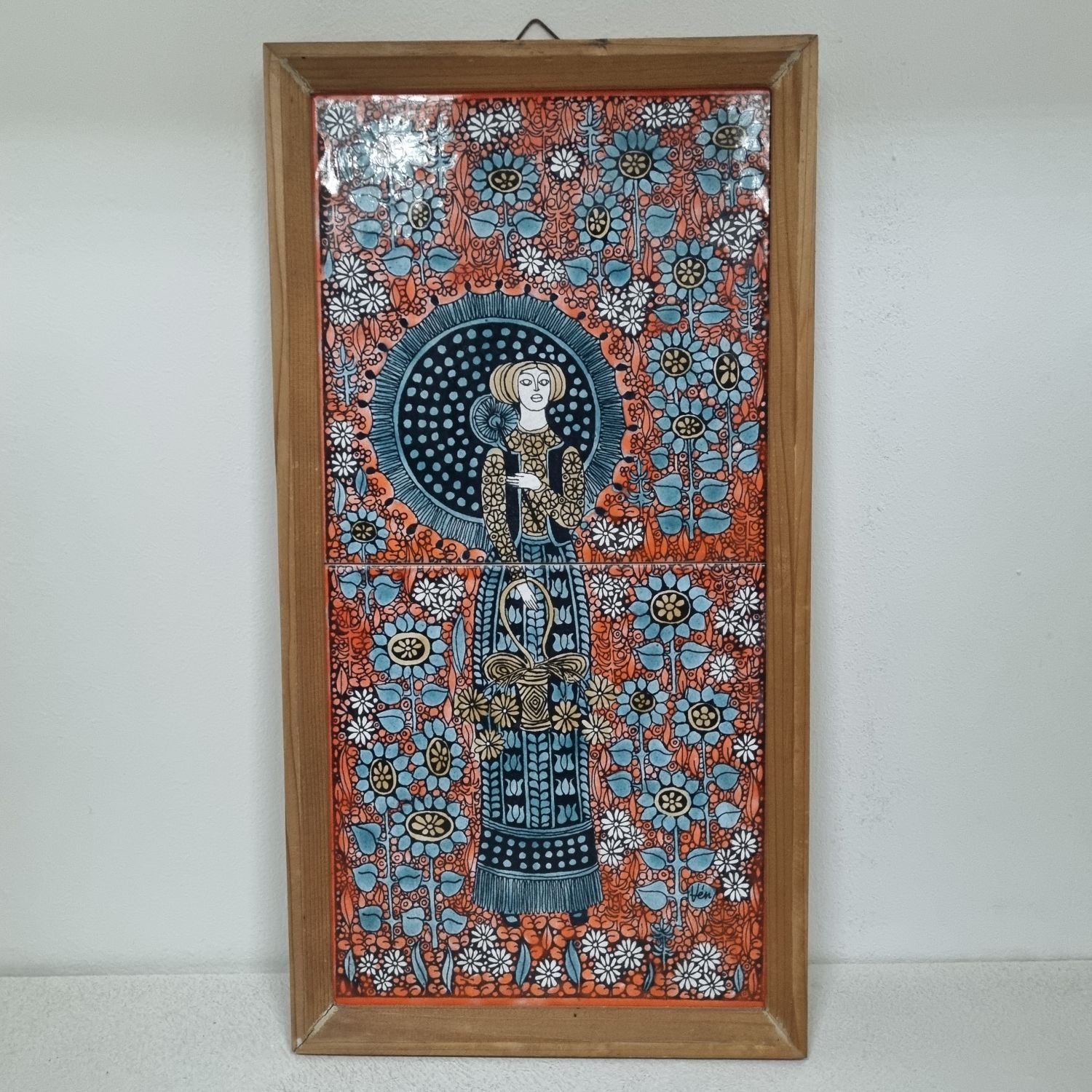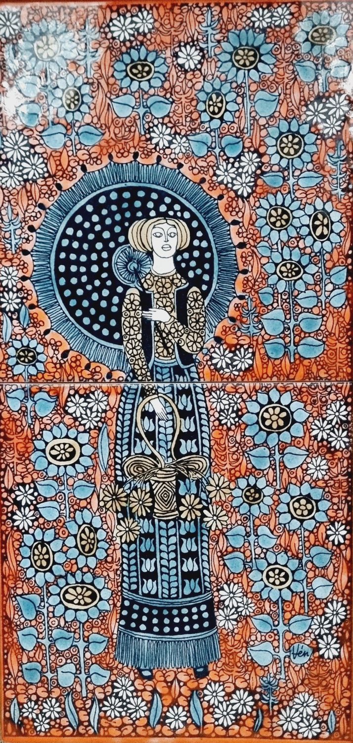 Vén Edit: Kétcsempés fali relief az 1970-es évekből. Részletgazdag, finom színvilágú csempekép. Jelzett: Vén