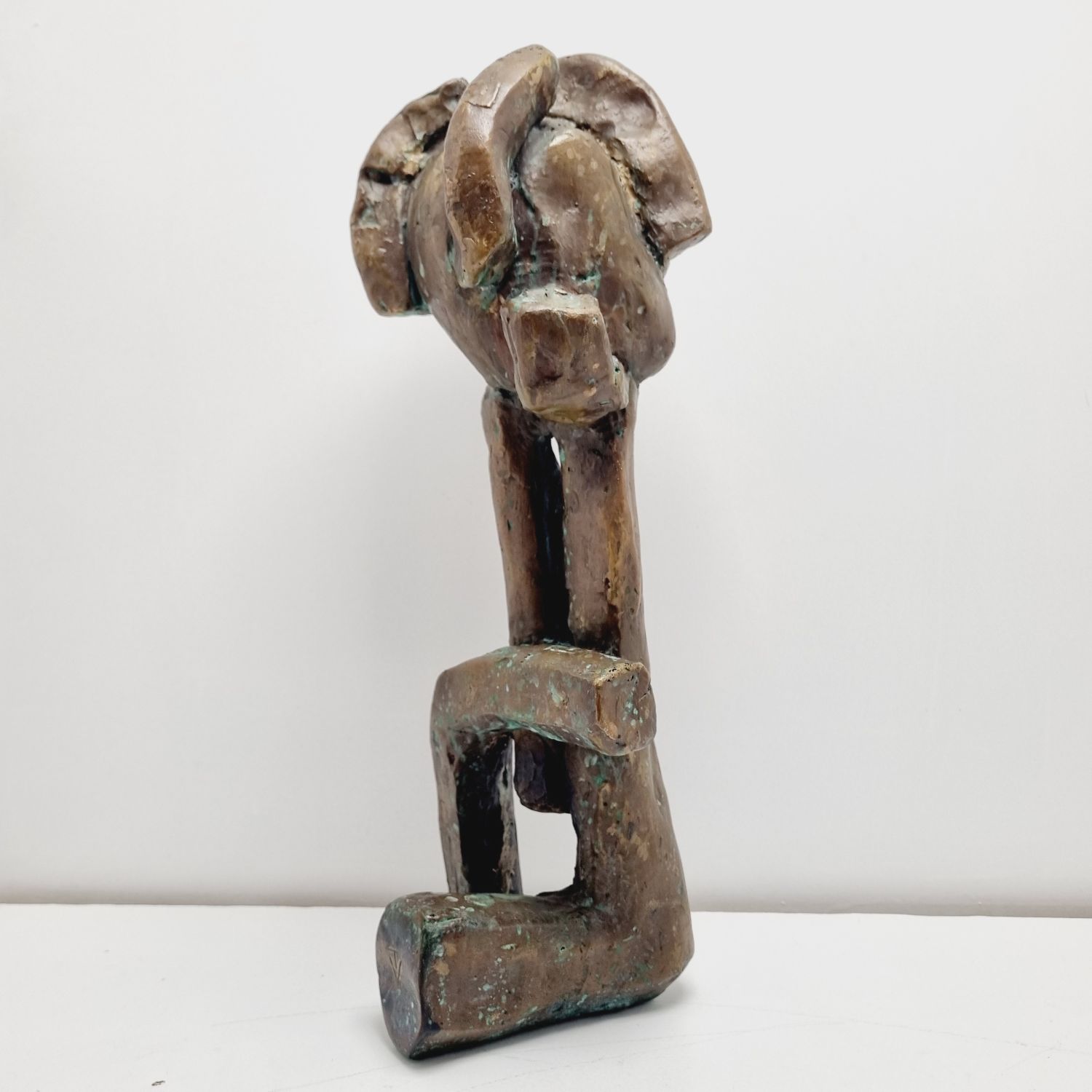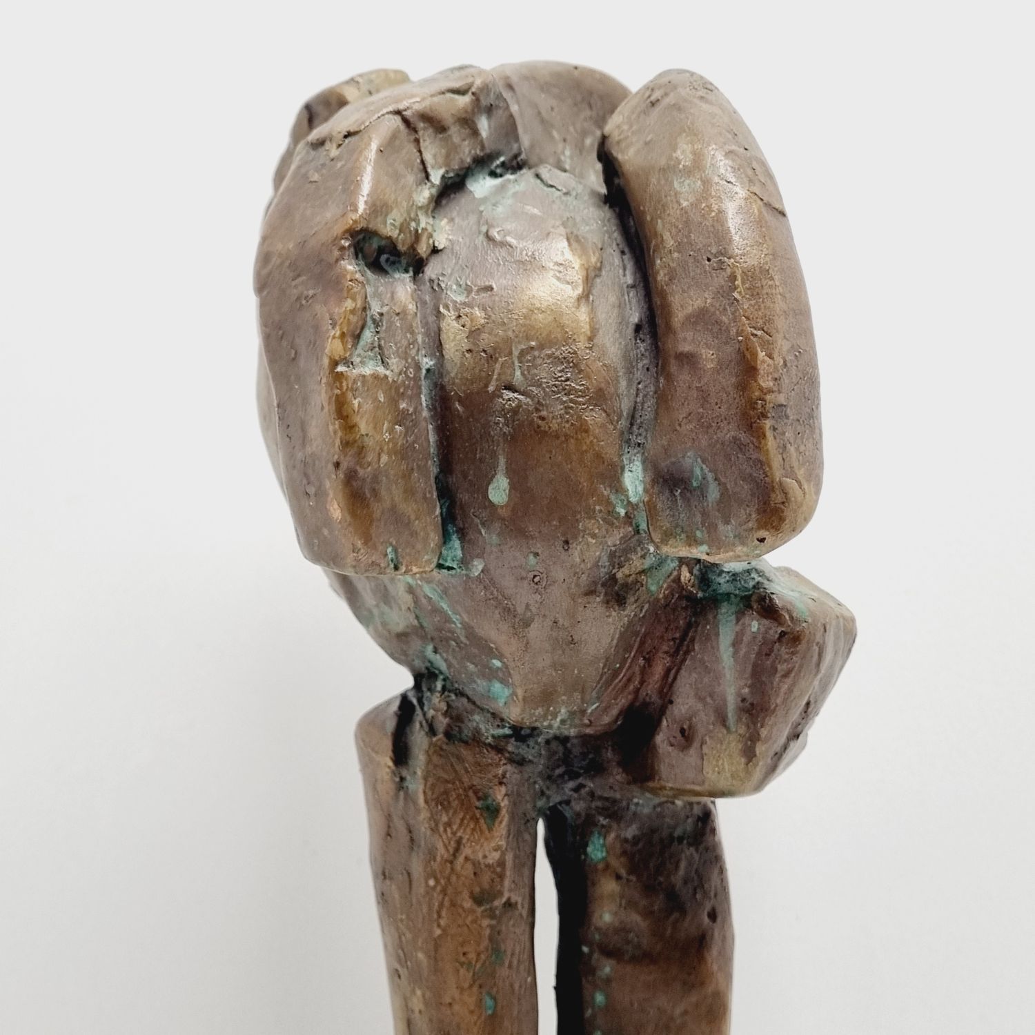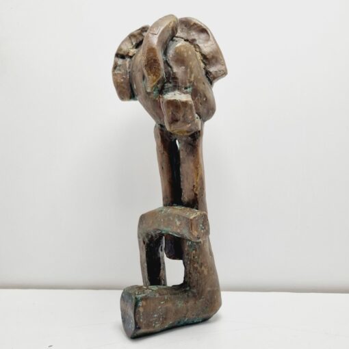 Vilt Tibor bronzból készült alkotása az 1952-ben készült. A brutalista stílusú műalkotás a részletek helyett a formákra és az anyag textúrájára fókuszál. Jelzett. Méretei: 37 x 13 x 13 cm.