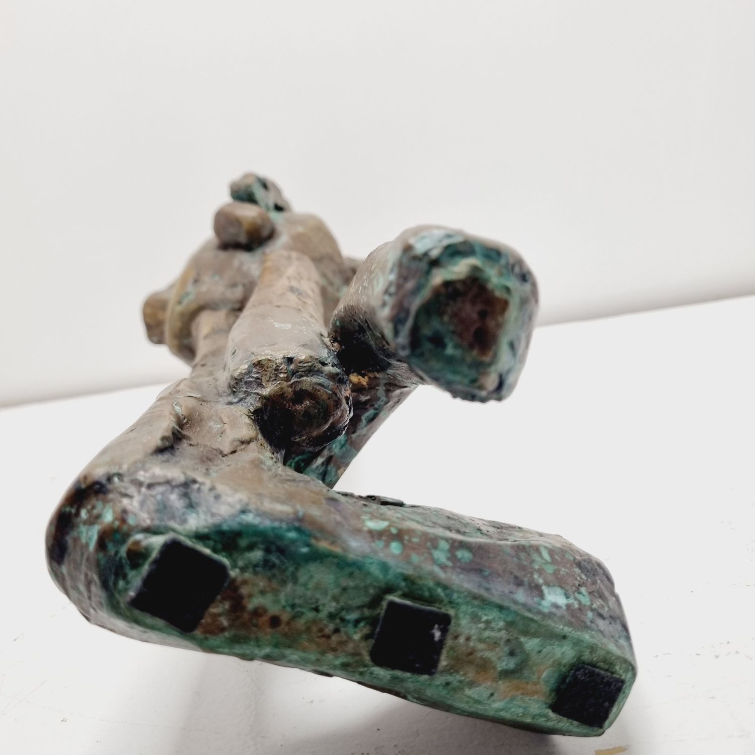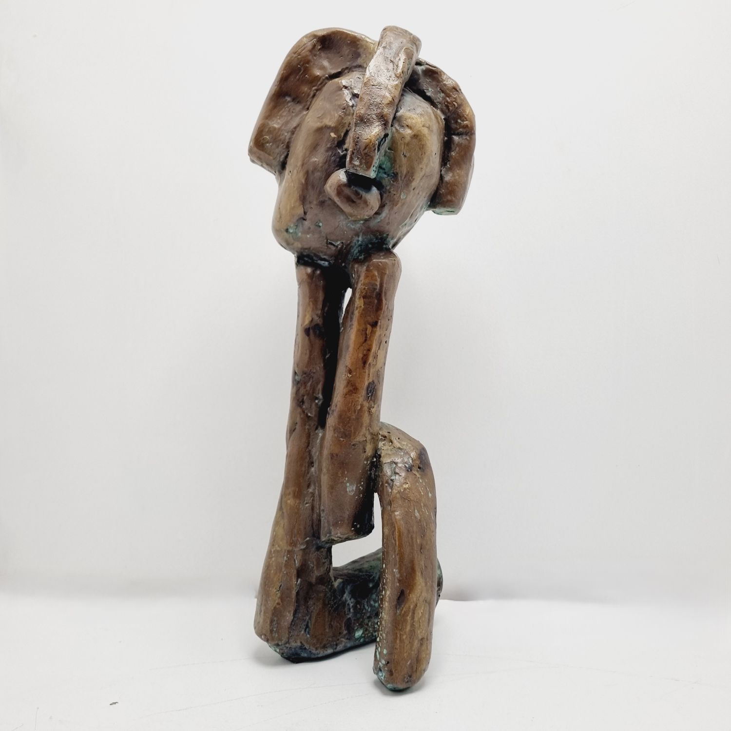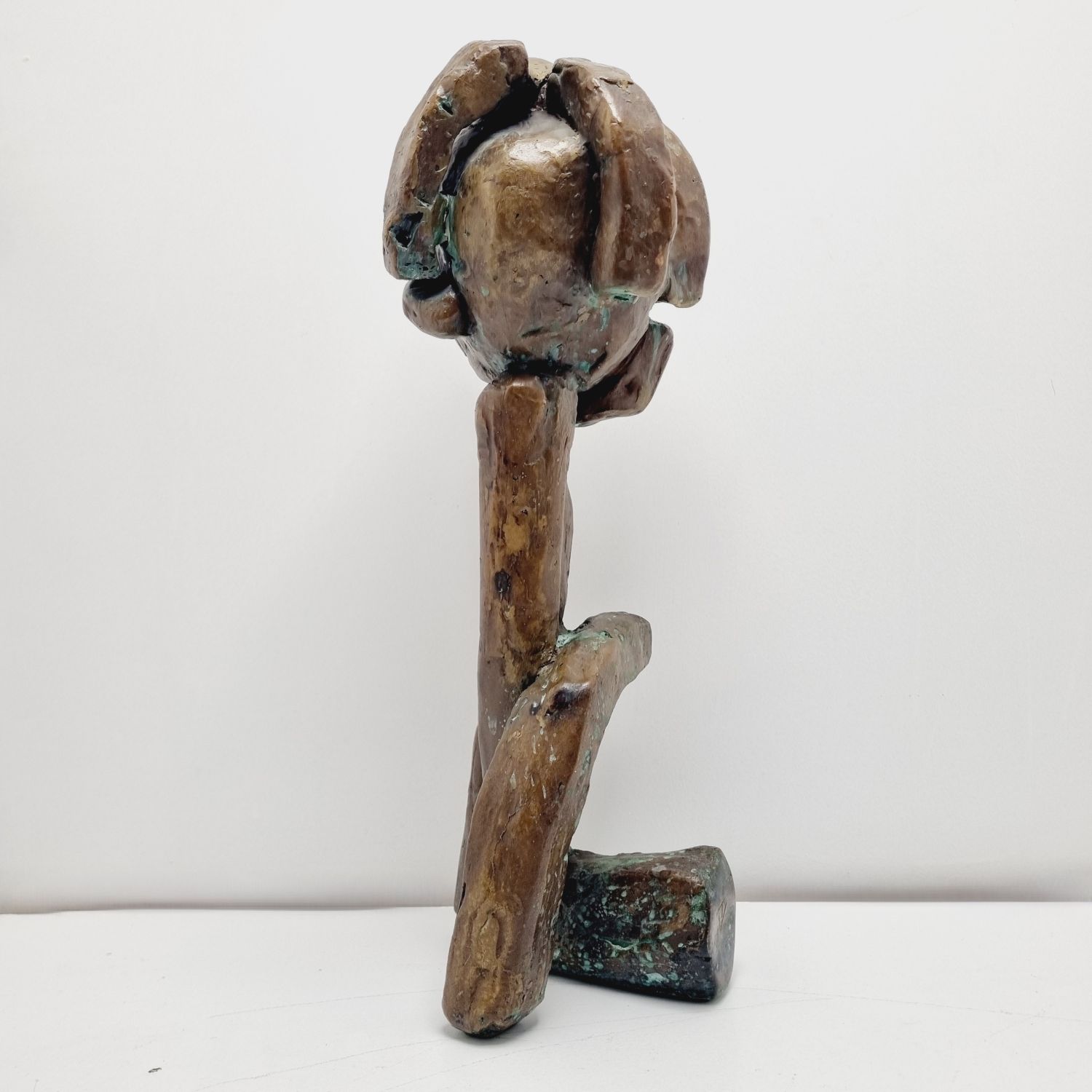 Vilt Tibor bronzból készült alkotása az 1952-ben készült. A brutalista stílusú műalkotás a részletek helyett a formákra és az anyag textúrájára fókuszál. Jelzett. Méretei: 37 x 13 x 13 cm.