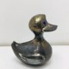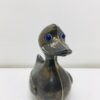 Ezüstözött vintage kacsa persely, kék zománc szemekkel