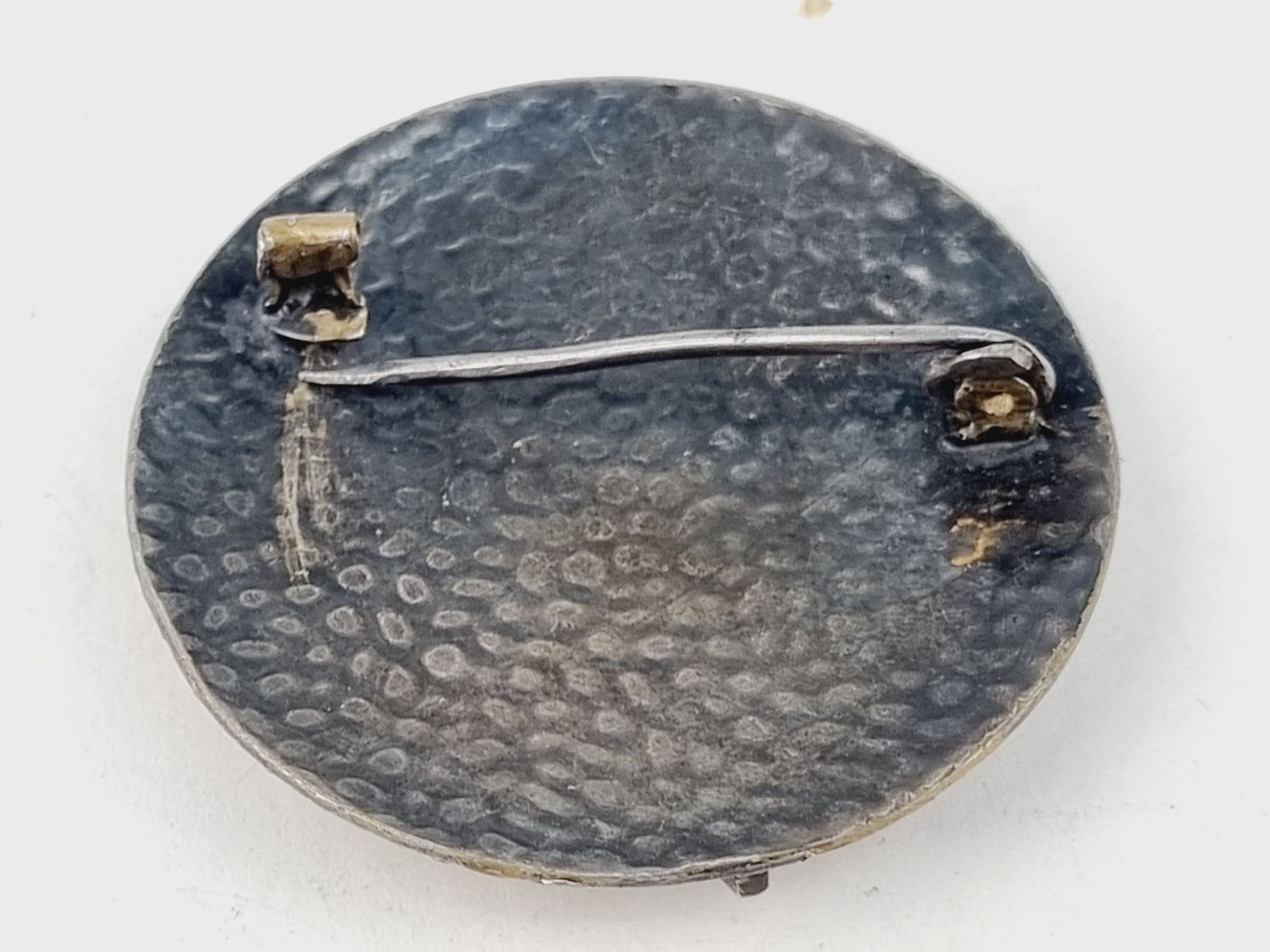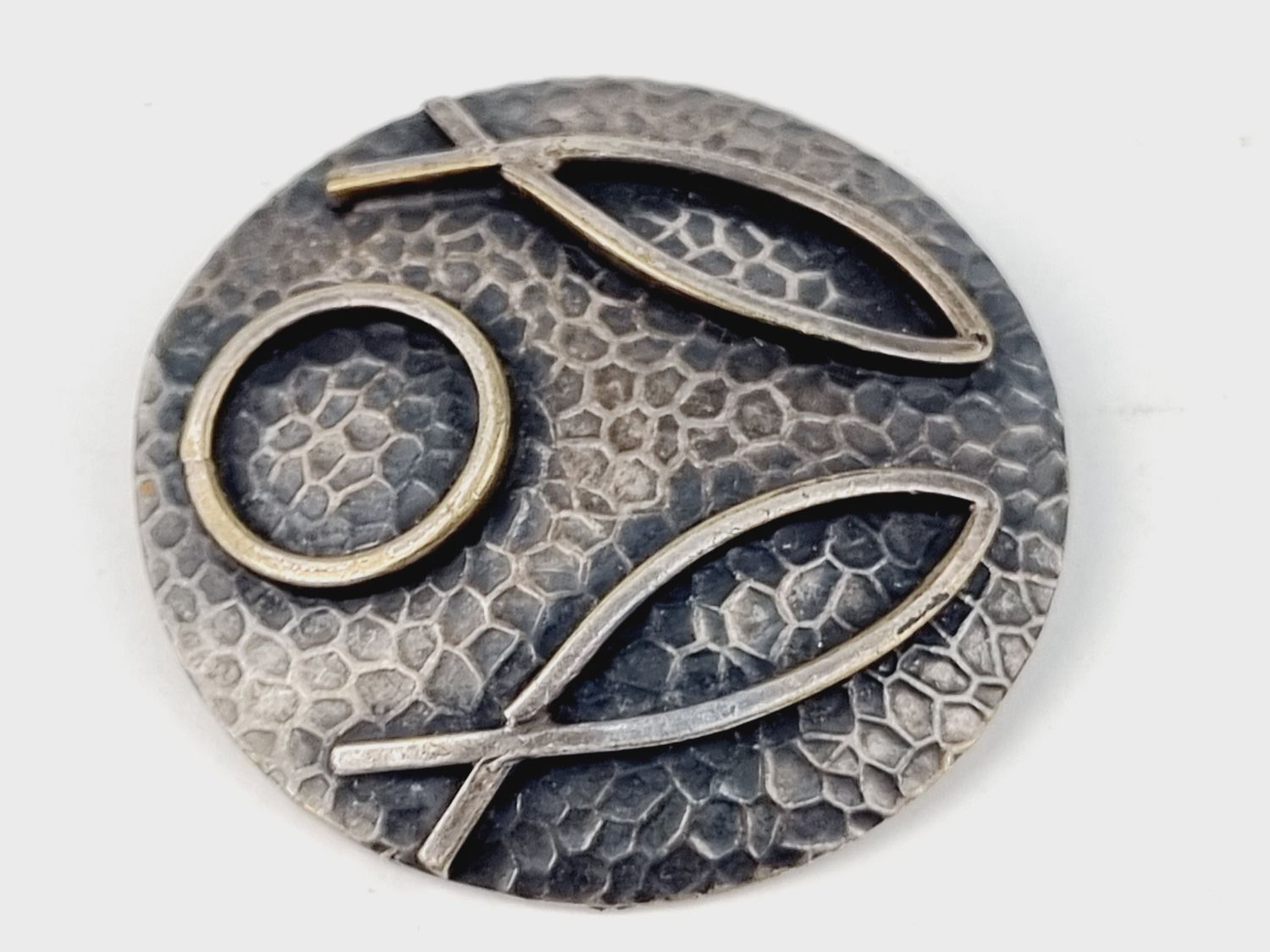 Vintage stílusú melltű az 1960-as évekből. Iparművészeti munka, kézzel kalapált egyedi darab.Állapota korának megfelelő.