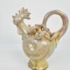 Kakast ábrázoló, irizáló gyöngyház mázas, kemény cserépből készült kerámia kiöntő. Méretei: 18x16x11 cm, jelezve az alján: Safin, hibátlan állapotban. Kora nagyjából 1980-as évekre tehető.