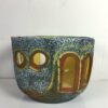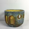 Nagyméretű élénk kék és sárga égetett mázas Pesthidegkúti kerámia kaspó. Repedésmentes, kiváló állapot.