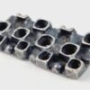 Az 1960-as években készült kitűzőt az egymáshoz kapcsolodó geometrikus formák teszik egyénivé.Jó állapotú stílusos ékszer. Méretei: 2x4x1 cm
