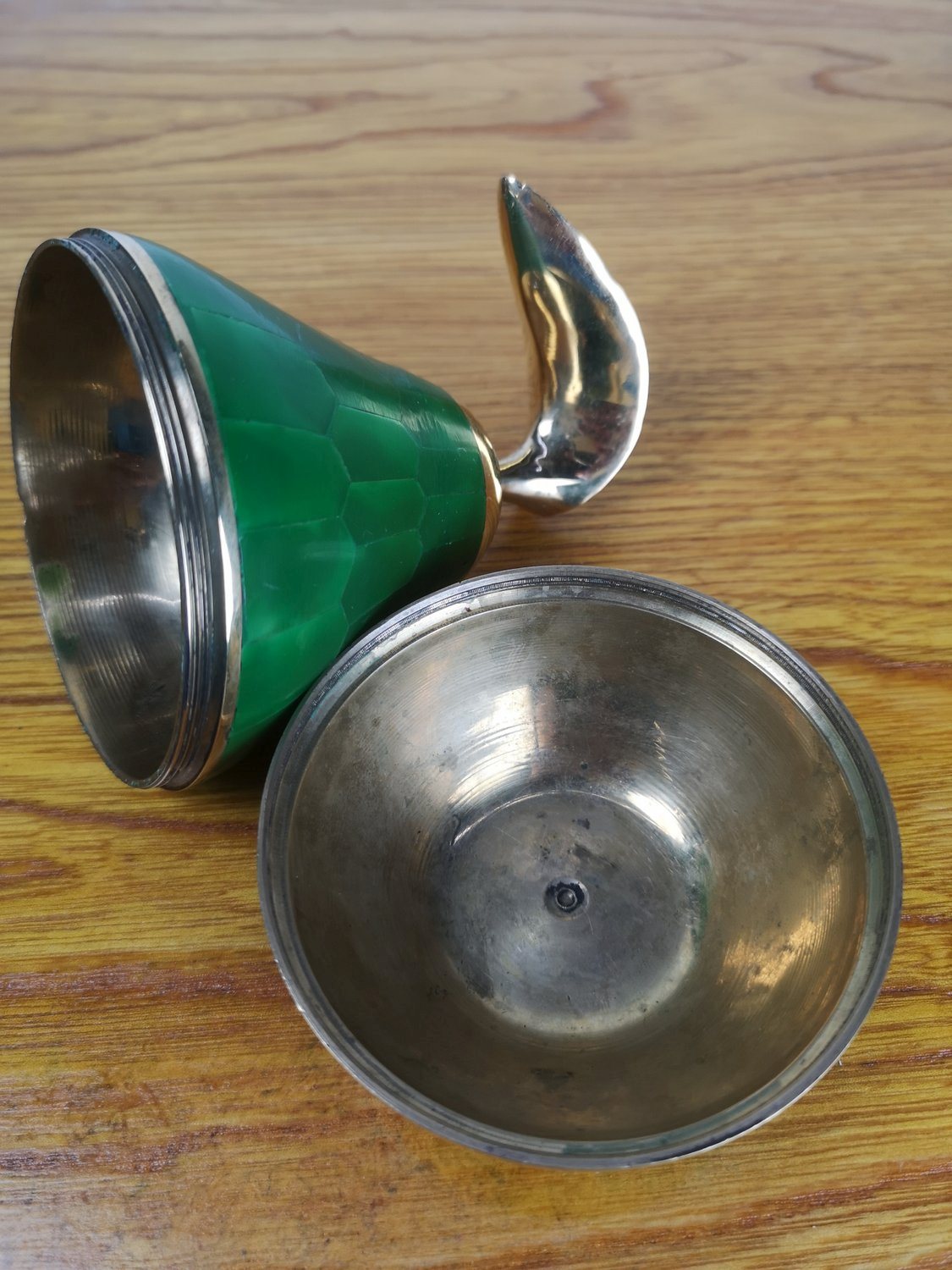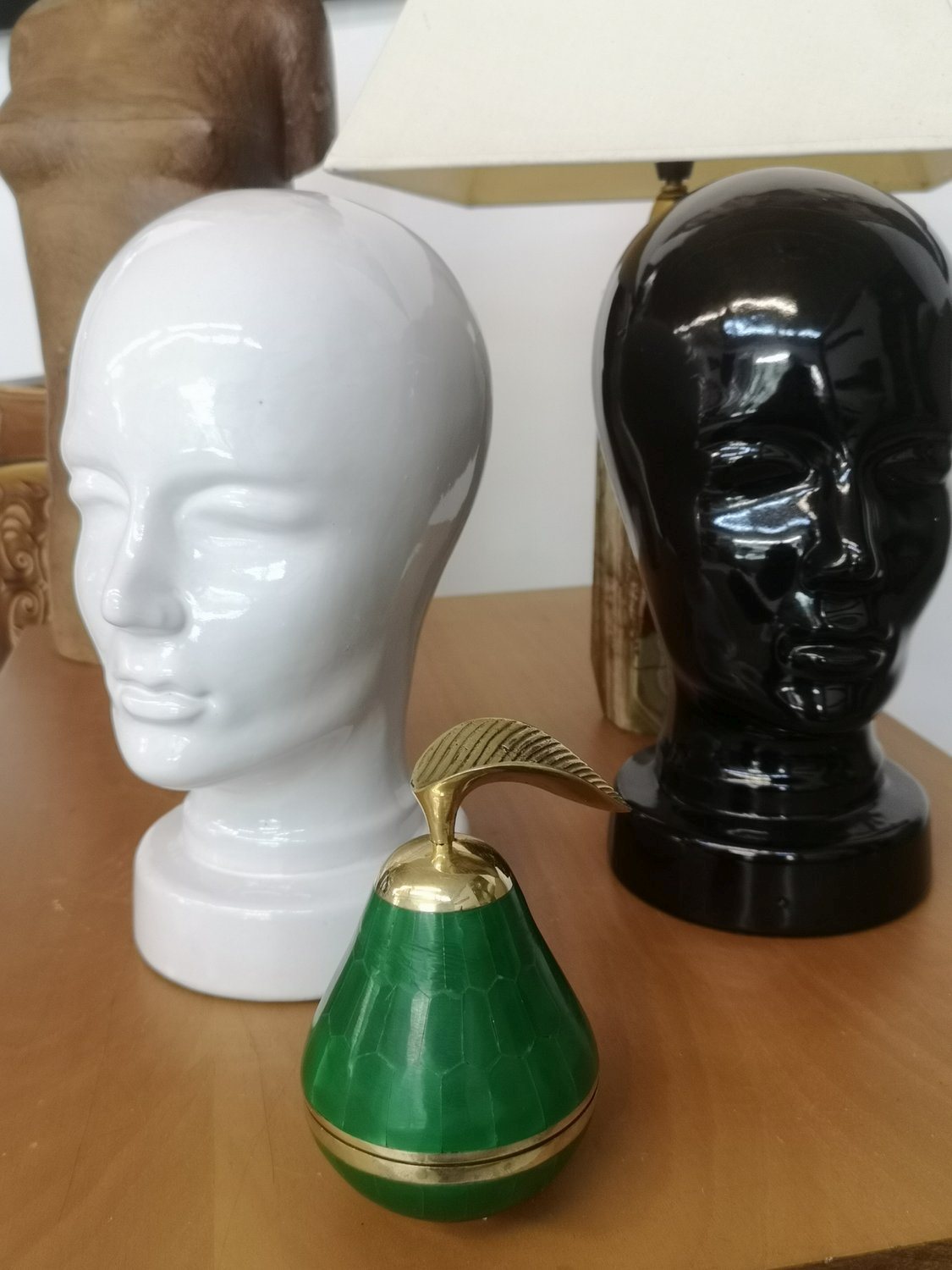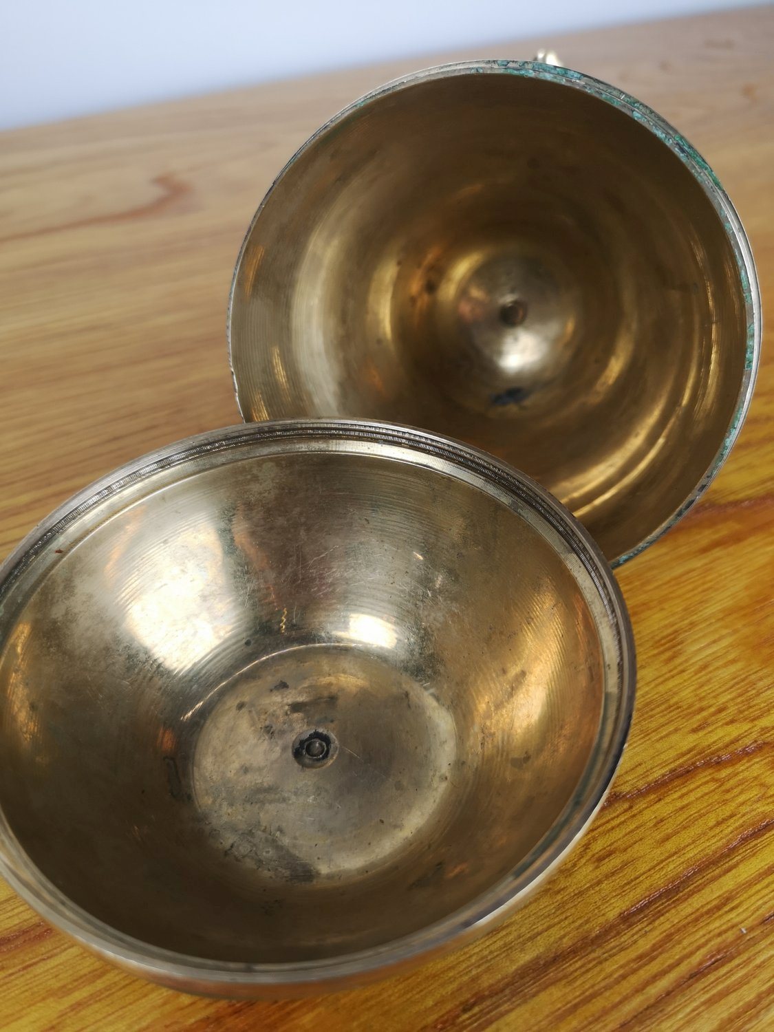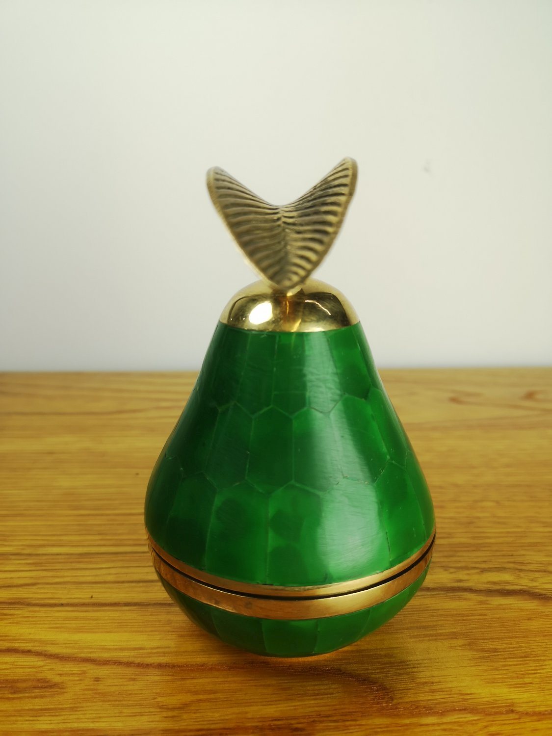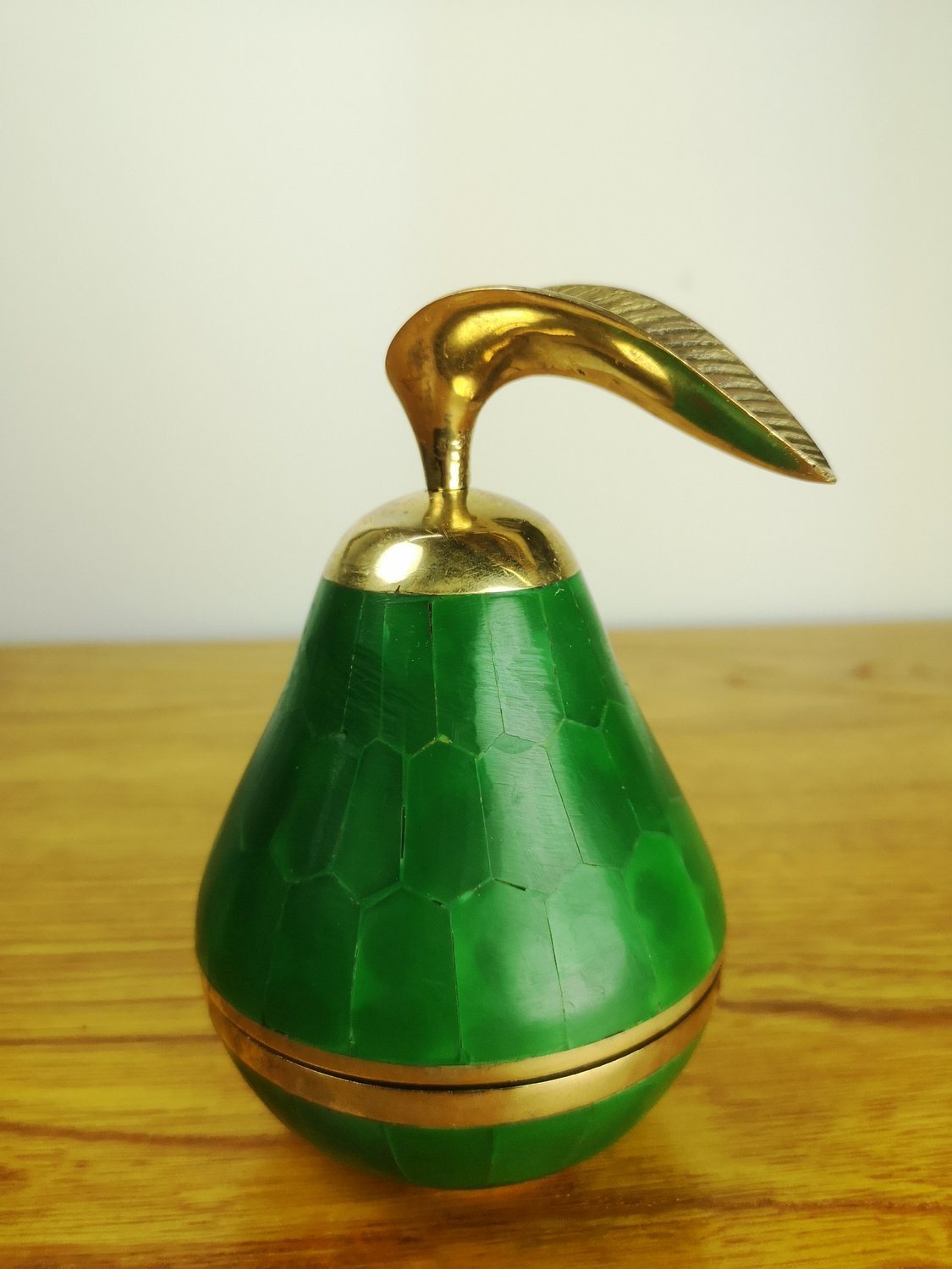 Vintage körte formájú réz és bakelit ékszertartó doboz