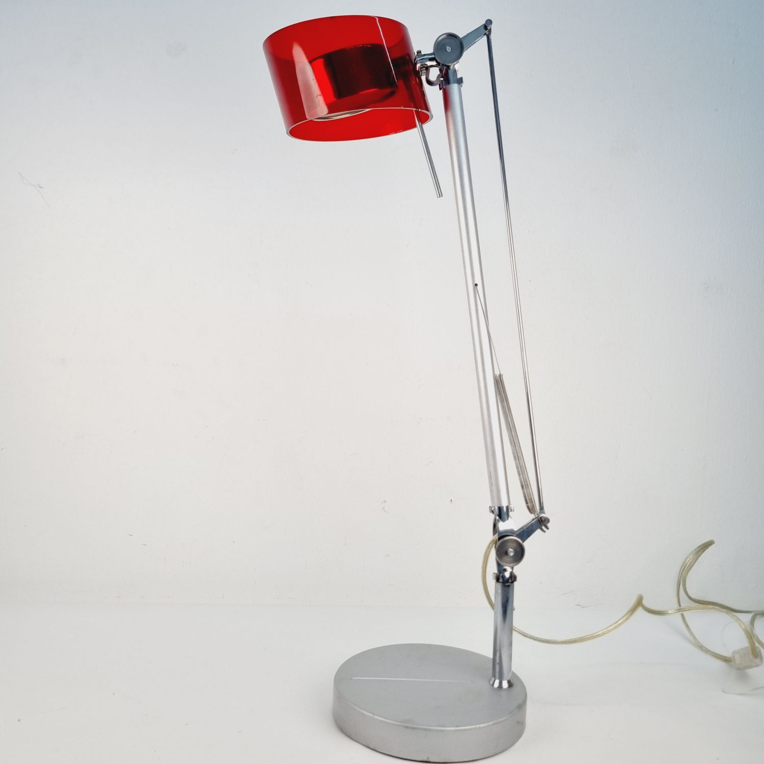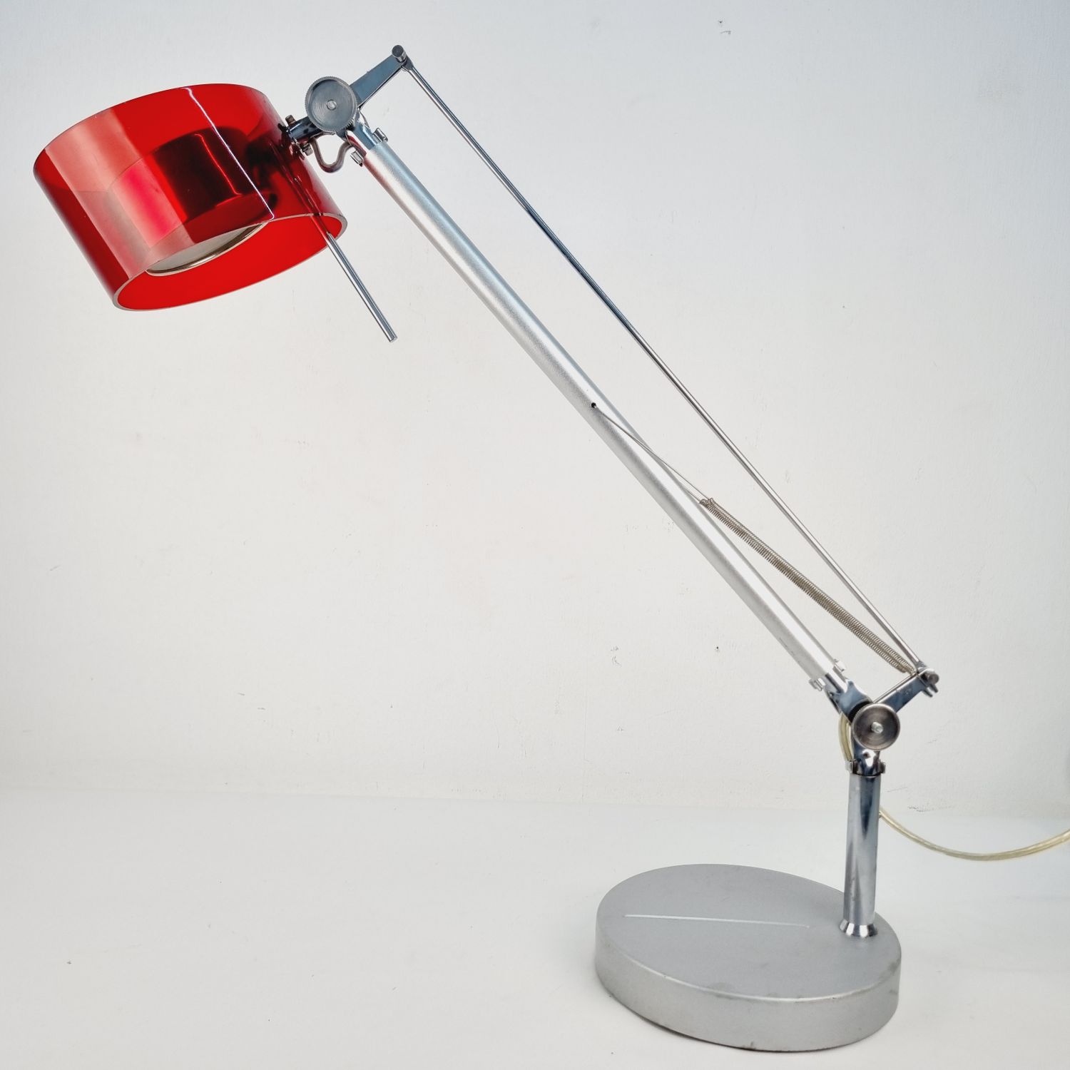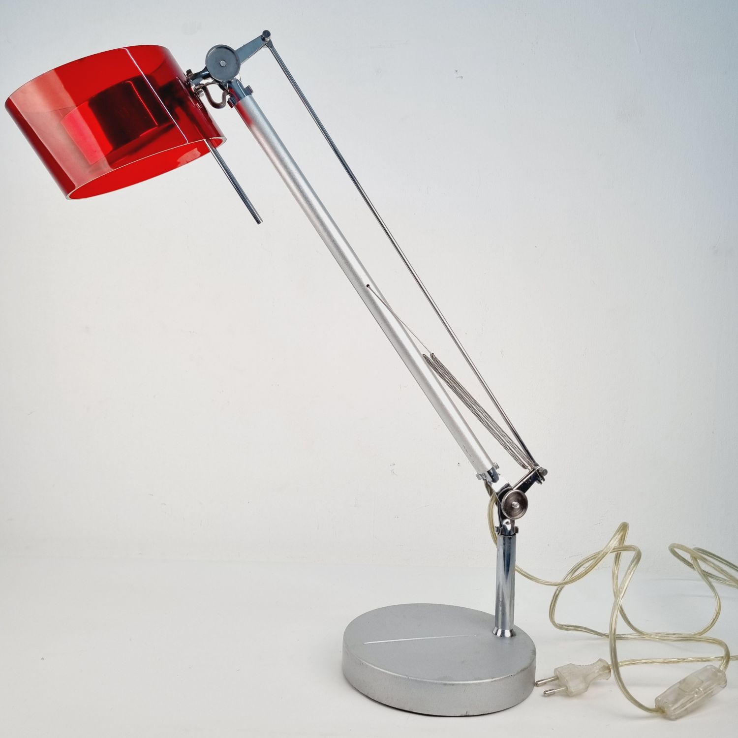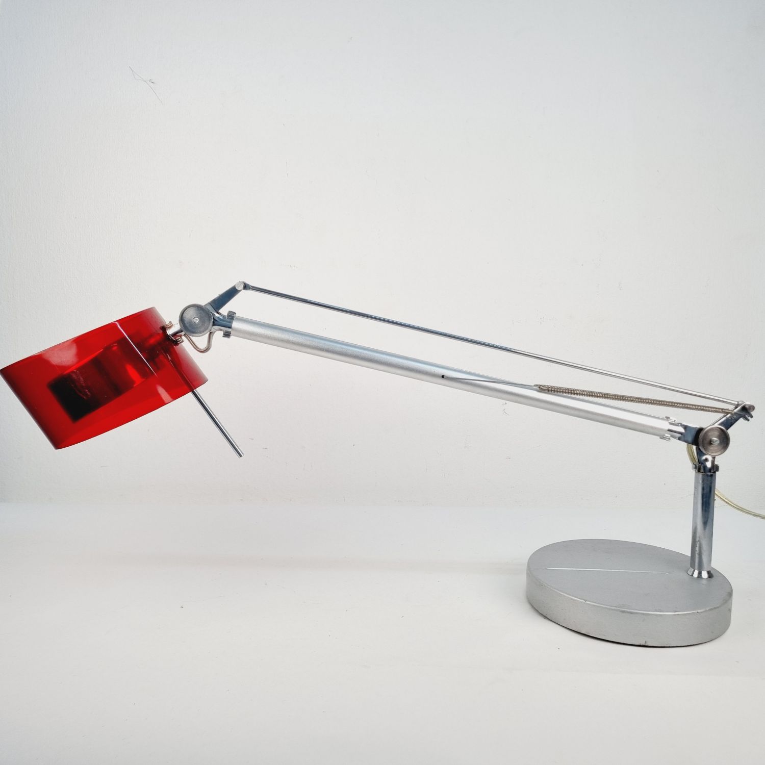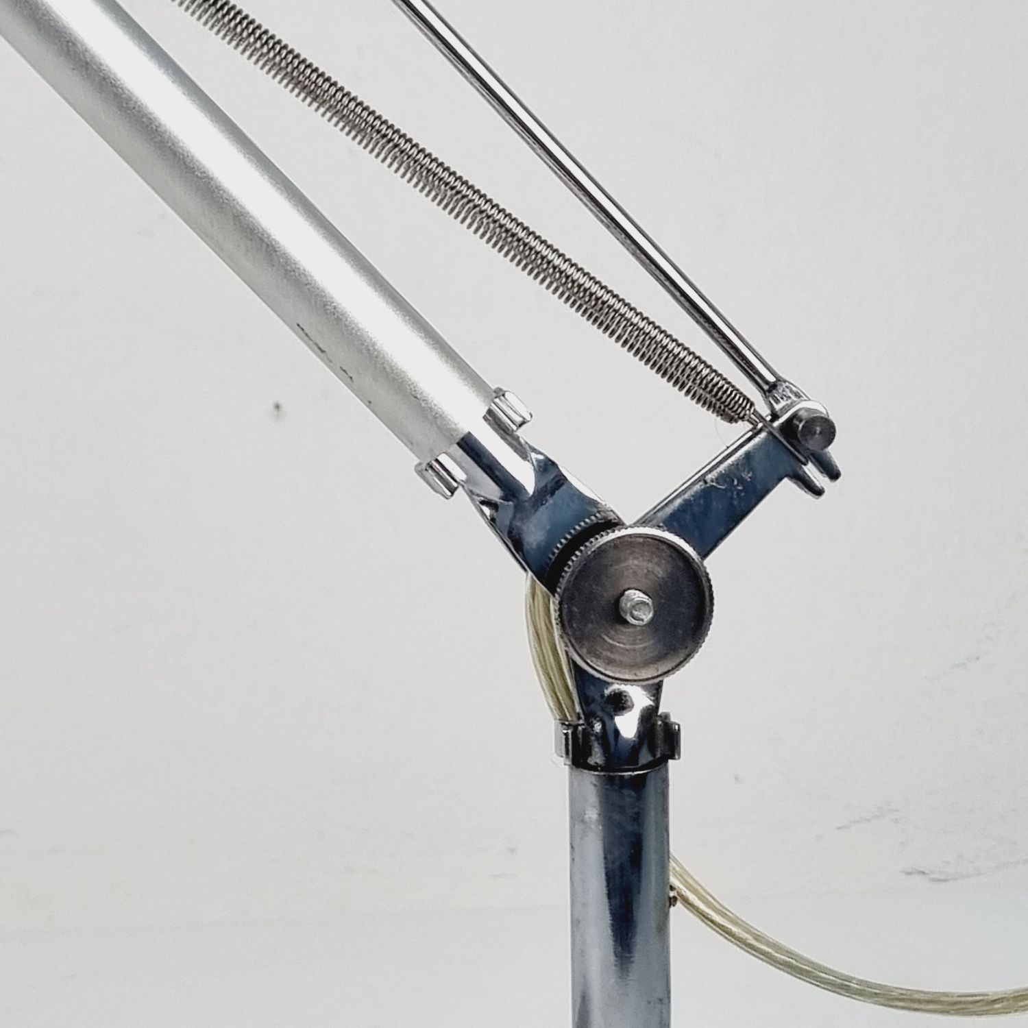 Modernista stílusú króm olvasó lámpa az 1980-as évekből. Müködőképes, korának megfelelő állapotú. Méretadatok: 56x16x16 cm