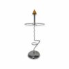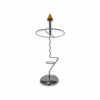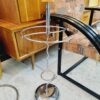 Modernista stílusú króm, csővázas esernyőtartó az 1980-as évekből geometrikus fából készült díszítő elemmel a tetején. Hasznos és dekoratív kiegészítő az előszobában. Korának megfelelő állapotú.