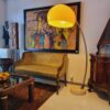 Ikonikus vintage, nagyméretű behajló Szarvasi Vas- és Fémipari Szövetkezet által forgalmazott állólámpa, eredeti címkével ellátva. Króm lámpatest,műanyag búra.Kora az 1970-es évekre tehető.Állapota korának megfelelő, működőképes.Skandináv és modernista stílusú nappalikba kitűnő választás.Méretei: 180x52x130 cm.