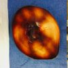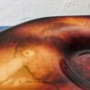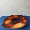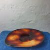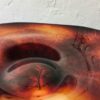 Obsidián színű cseh üveg asztalközép az 1960-as évekből.Forradalmian új szinezési és csiszolási technika jellemzi. Korának megfelelő állapotú.Méretei: 7x46x36 cm