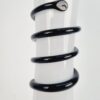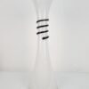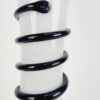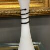 Vintage fehér hutaüveg váza fekete üveg kígyótekercs díszítéssel, stílusjegyei alapján feltételezhetően a lengyel üvegművész, Jerzy Słuczan-Orkusz alkotása. Hibátlan állapotú.