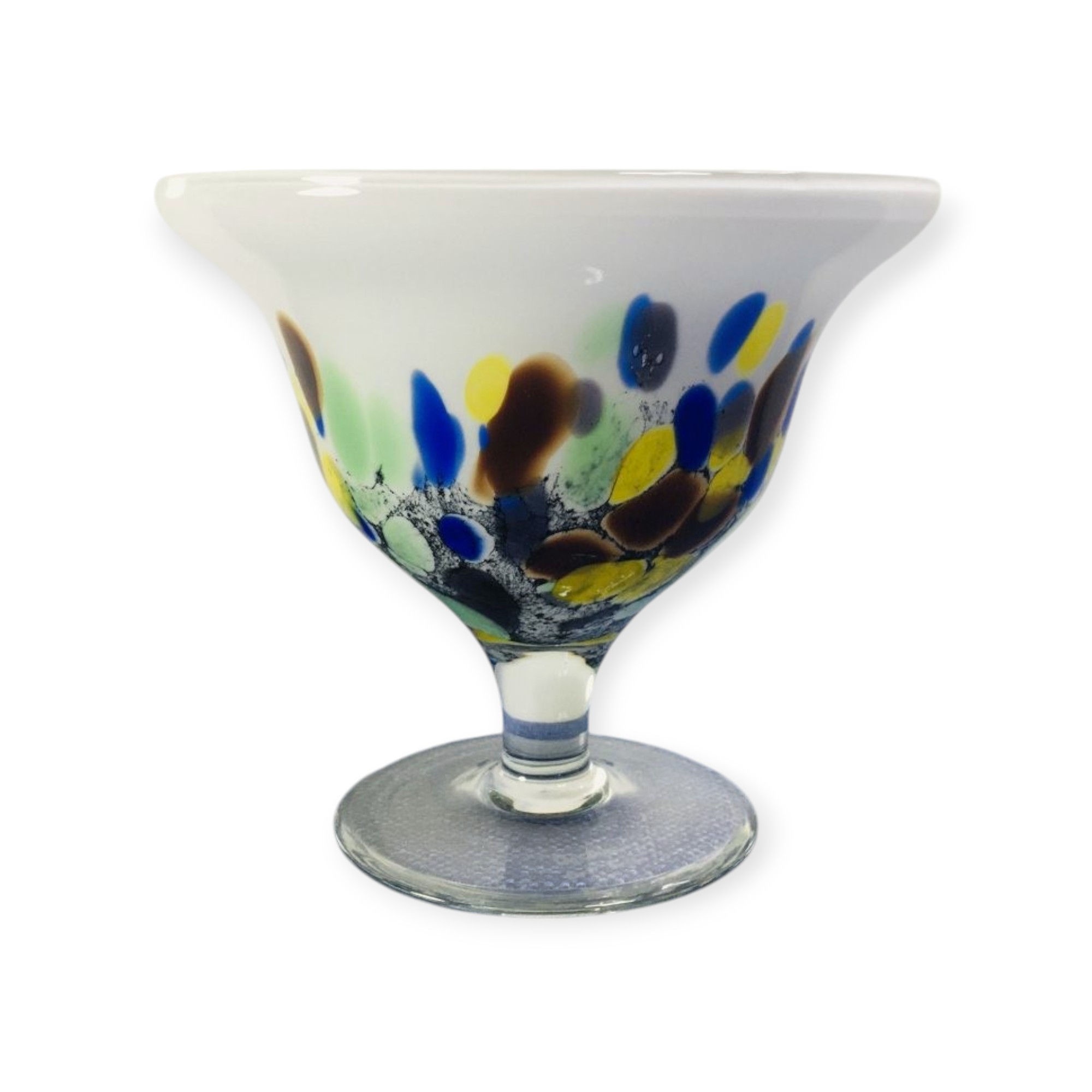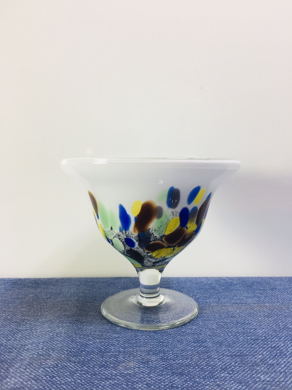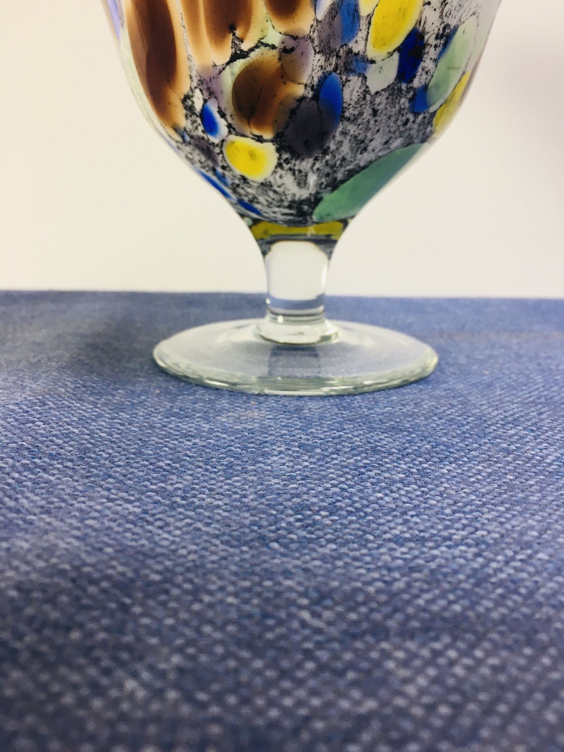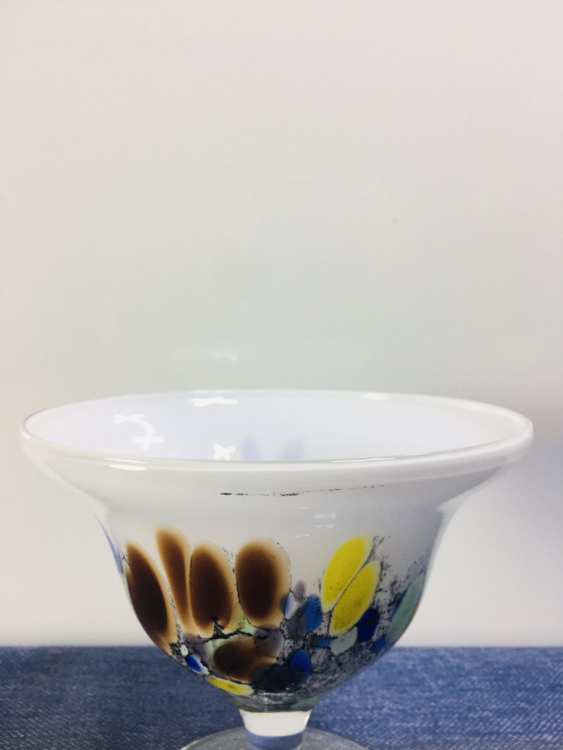 Vintage / mid-century modern német design talpas többszínű fújt üveg kínálótál, 1970’s, Hans Jürgen Richartz