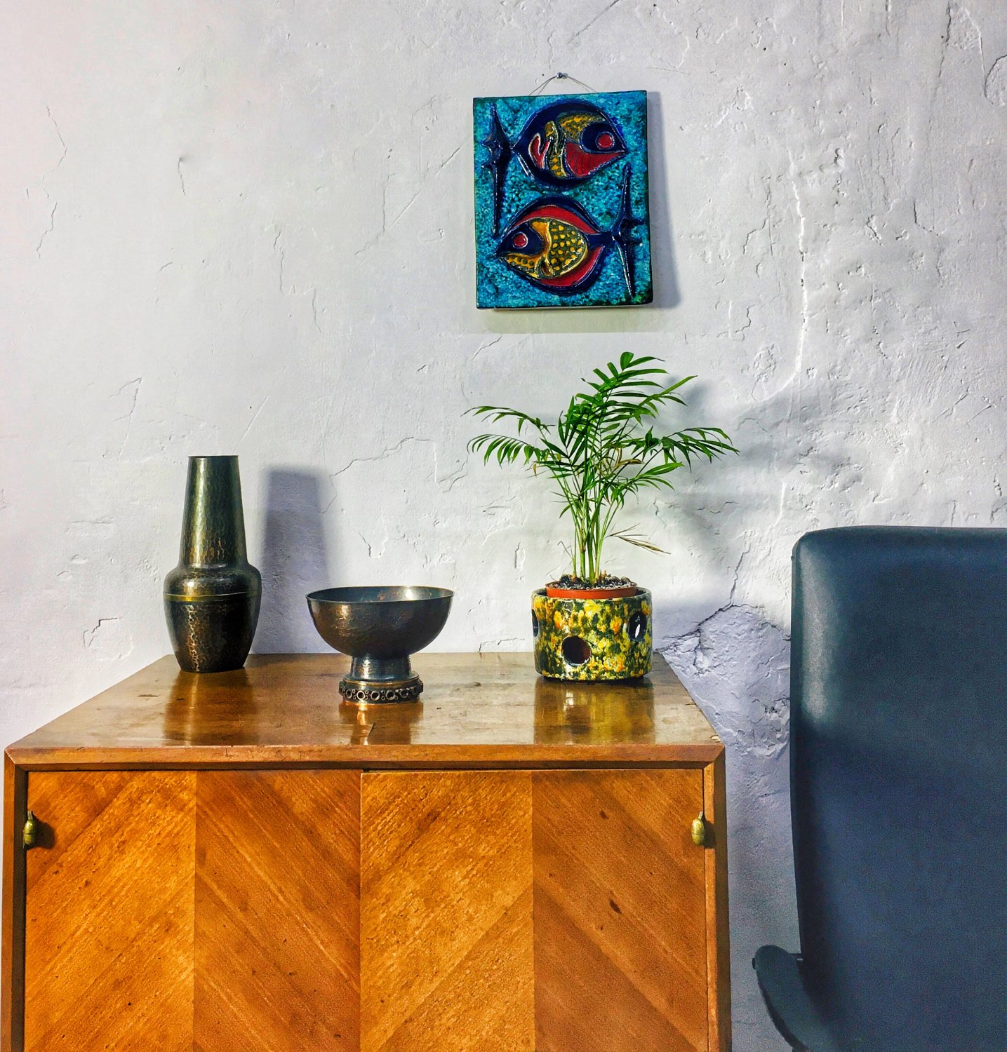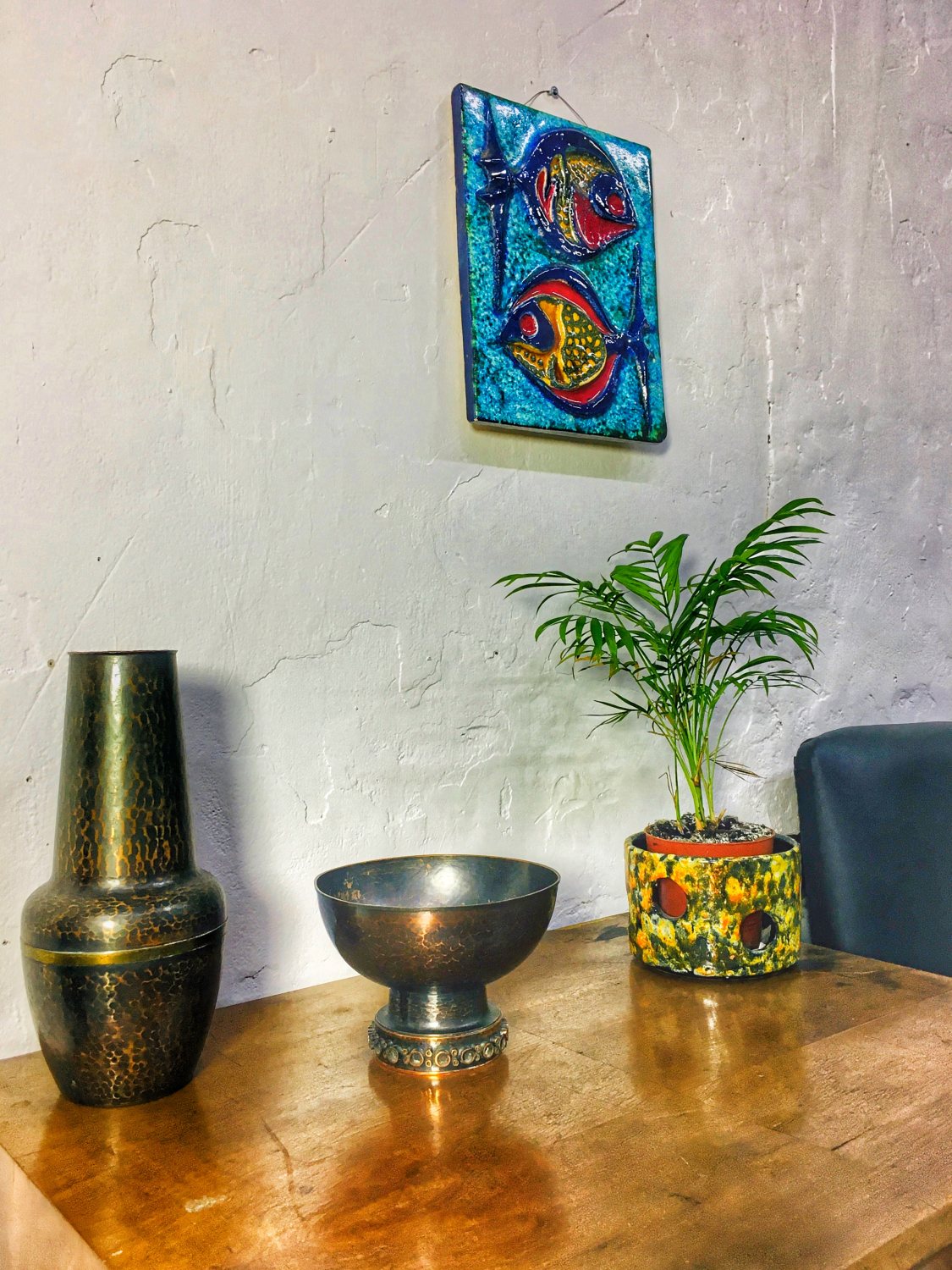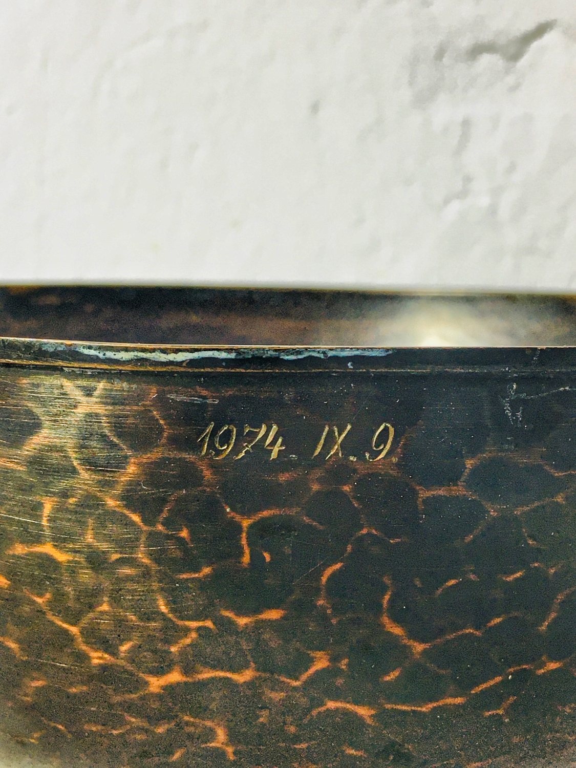 Vintage Mid Century patinázott antik hatású vörösréz kínáló, 1970’s,