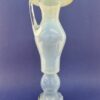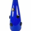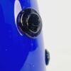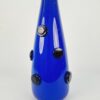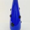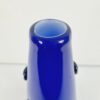 Vastag falú, nagyobb méretű, több rétegű, fújt, kézi készítésű kék vintage Muranoi üveg váza az 1970-es éveknől. Külsején plasztikusan kiemelkedő, eltérő színű geometriai formák teszik egyedivé.