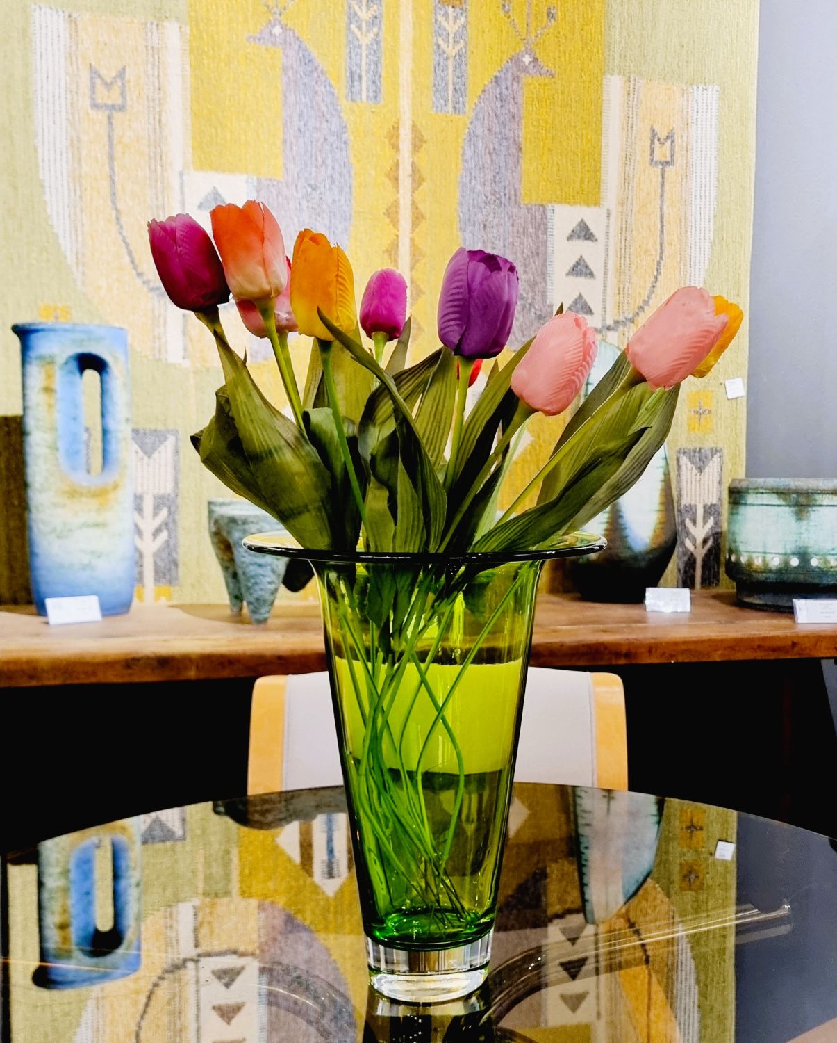 Vintage Schott Zwiesel nagyméretű neonzöld design váza