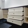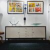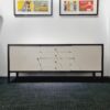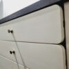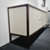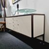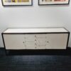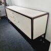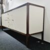 Sideboard, Stollenlinie Brasilia 1969. Különleges német kisipari bútor, kőrisfa és fehér laminált lapokkal. Szerkezetileg stabil, korához képest jó állapotban. Jól kihasználható, formája és megjelenése elegáns. Méretei: 75 x 183 x 46 cm.