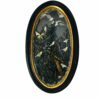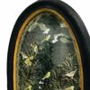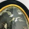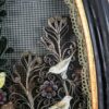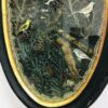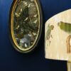Kézzel készített vegyes technikát alkalmazó Wegroszta Gyula egyedi alkotása, Falu végén című elipszis formájú asszamblázs kép. Alkotása erdei jelenetet ábrázol, papírból formált fákkal és színes madarakkal, figurákkal. Az összhatás egy hangulatos, gyakran humoros jelentés tartalmú képi világ amely jellegzetes a művészre. Fekete kerete aranyozott, hátulján jelzett, szép állapotban.