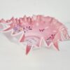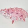 “Pöstyéni emlék” festett üveg asztalközép az 1800-as évek végén készült. Viktoriánus stílus jegyeit hordozó, finom színvilágú hibátlan lakásdekoráció. Méretei 9x27x22 cm