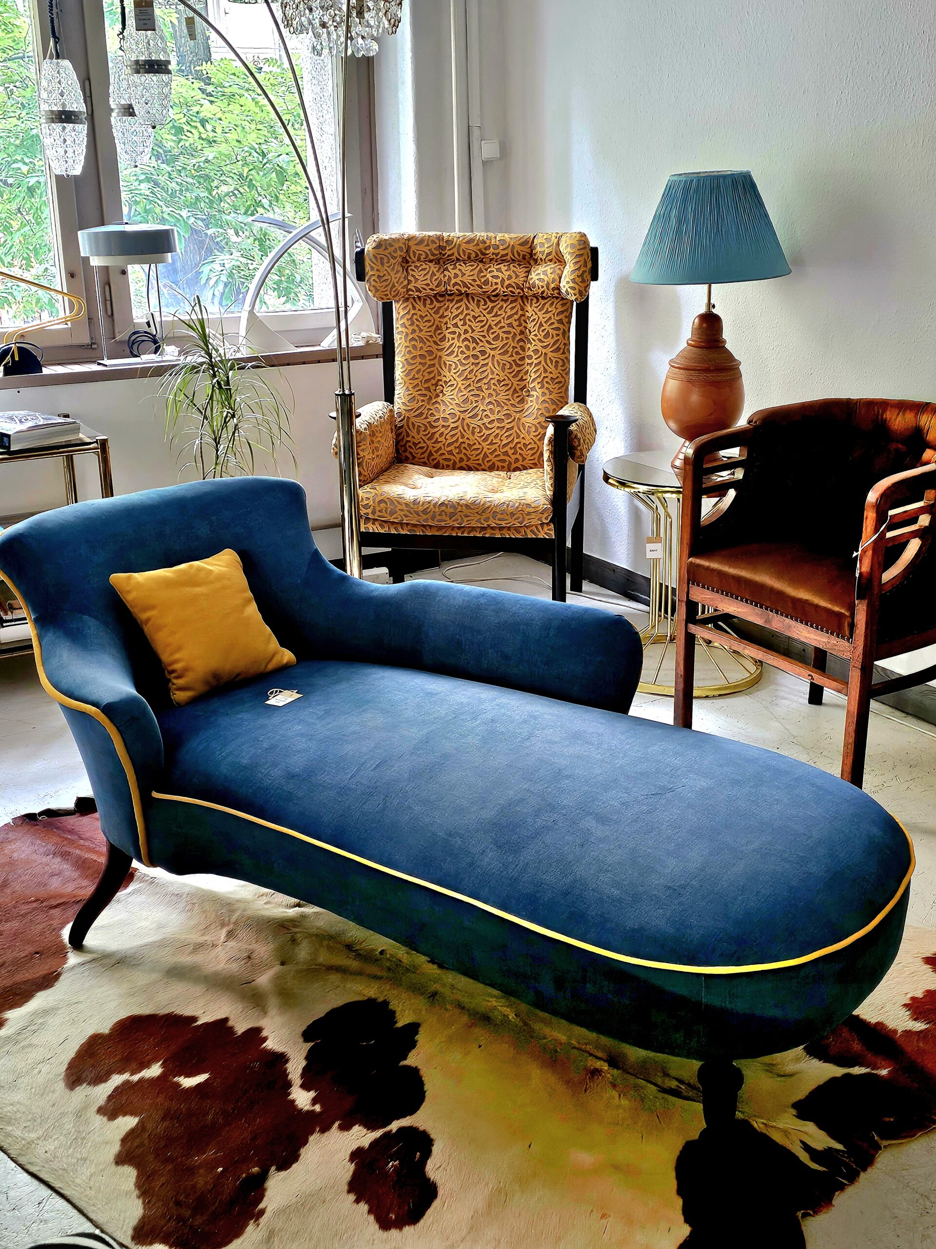 Extra kivitelezésű, új bársonykárpitba öltöztetett szófa. Klasszikus vonalvezetésű, minden stílussal ötvözhető bútordarab. XIX. sz-i. Méretei: 114x68x49cm