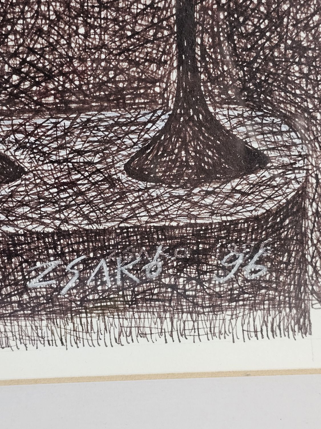 Tus, papír. Méret kerettel: 48x32cm, keret nélkül: 35x20cm. J.k.l.: ZSAKÓ 96′