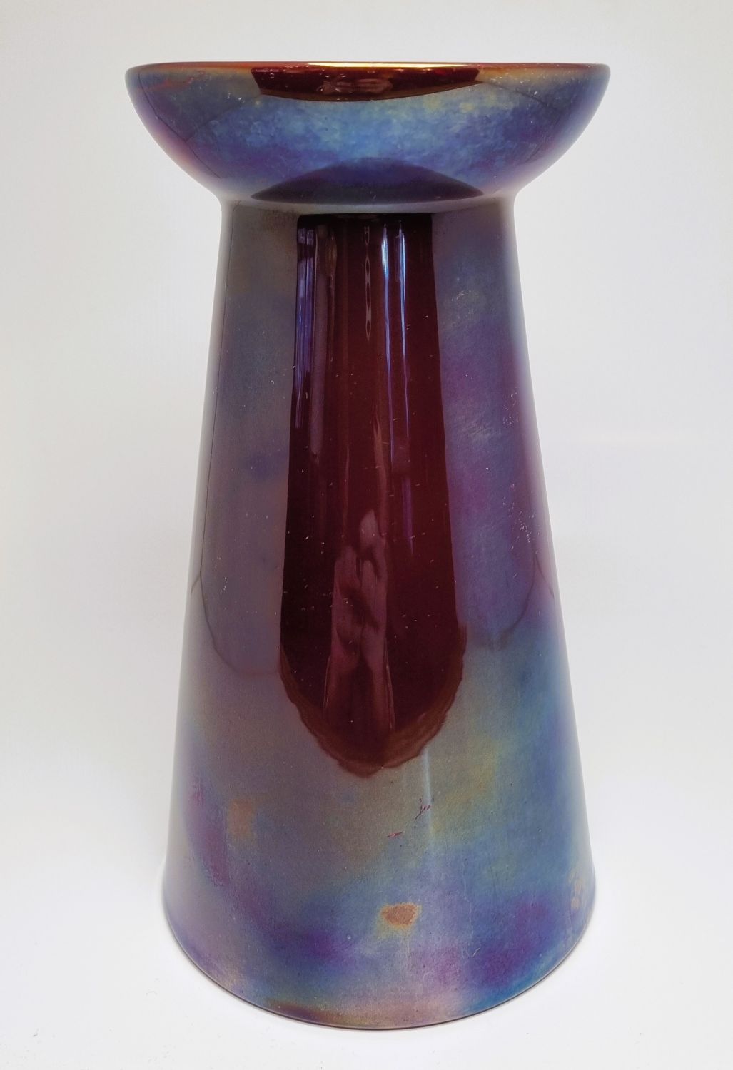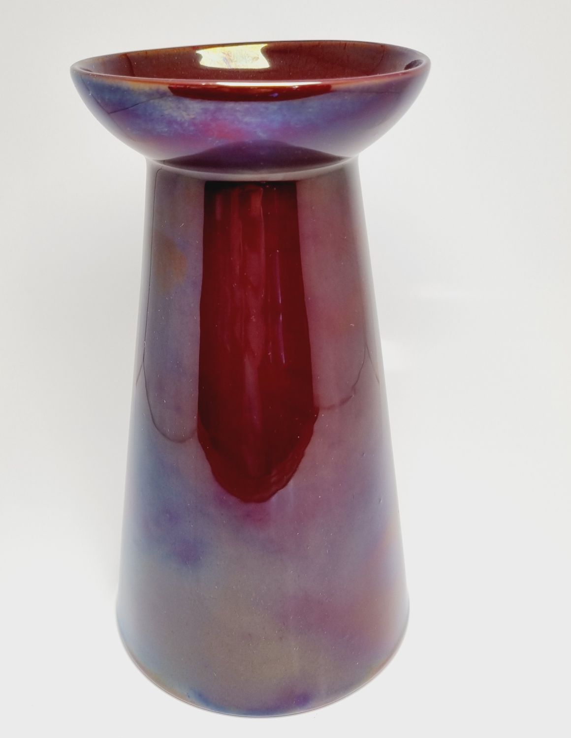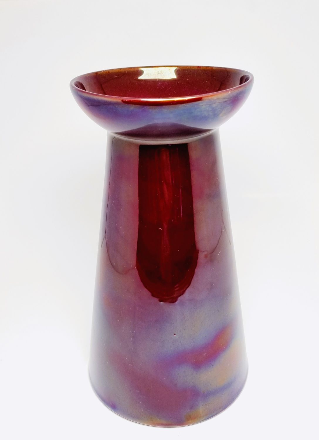 Zsolnay ökörvérmázas váza, a kora ellenére -1920s évek – modern formavilág jellemzi. Gyűjtői darab, értékét a különleges máz színe és a váza kora határozza meg. Az alján jelzett. Hibátlan állapotú. Méretei : 20 x 11,5 x 11,5 cm.