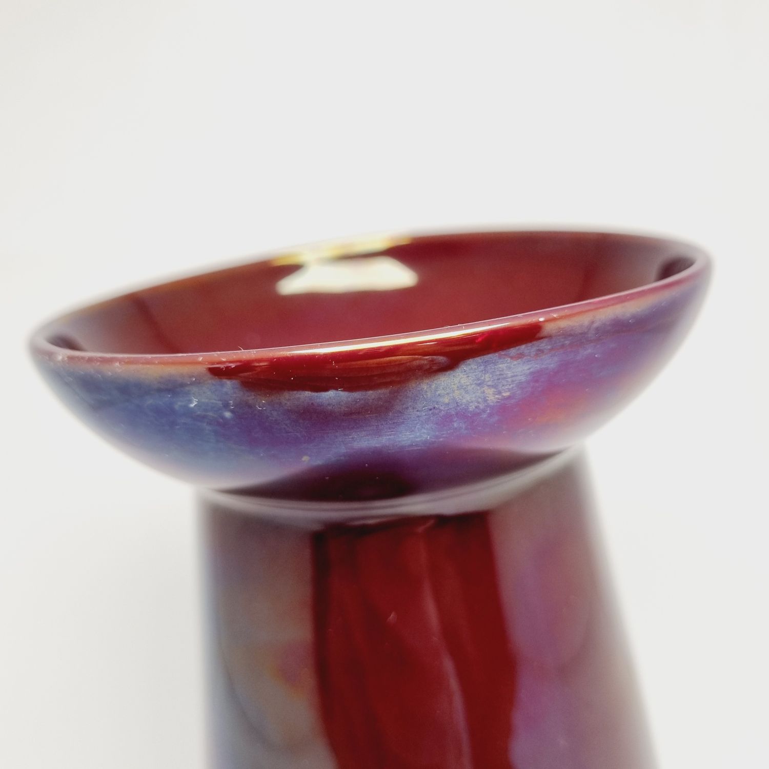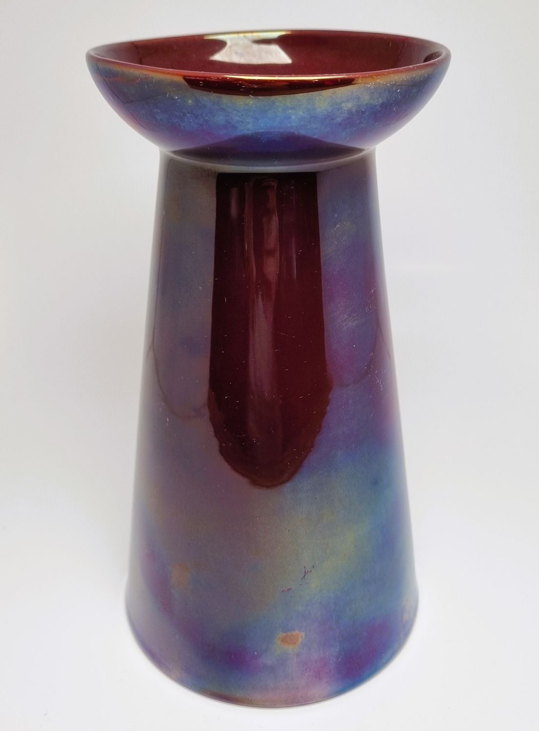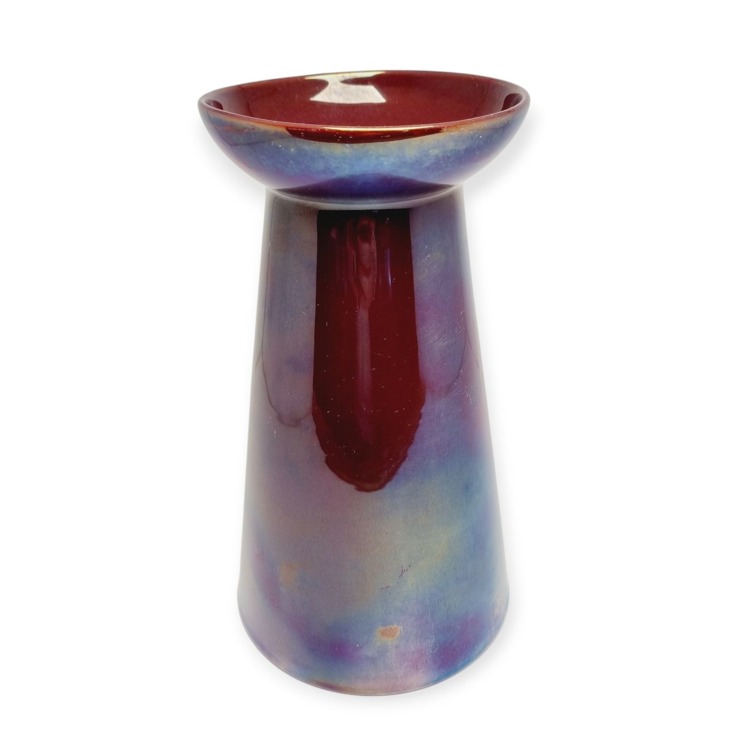 Zsolnay ökörvérmázas váza, a kora ellenére -1920s évek – modern formavilág jellemzi. Gyűjtői darab, értékét a különleges máz színe és a váza kora határozza meg. Az alján jelzett. Hibátlan állapotú. Méretei : 20 x 11,5 x 11,5 cm.